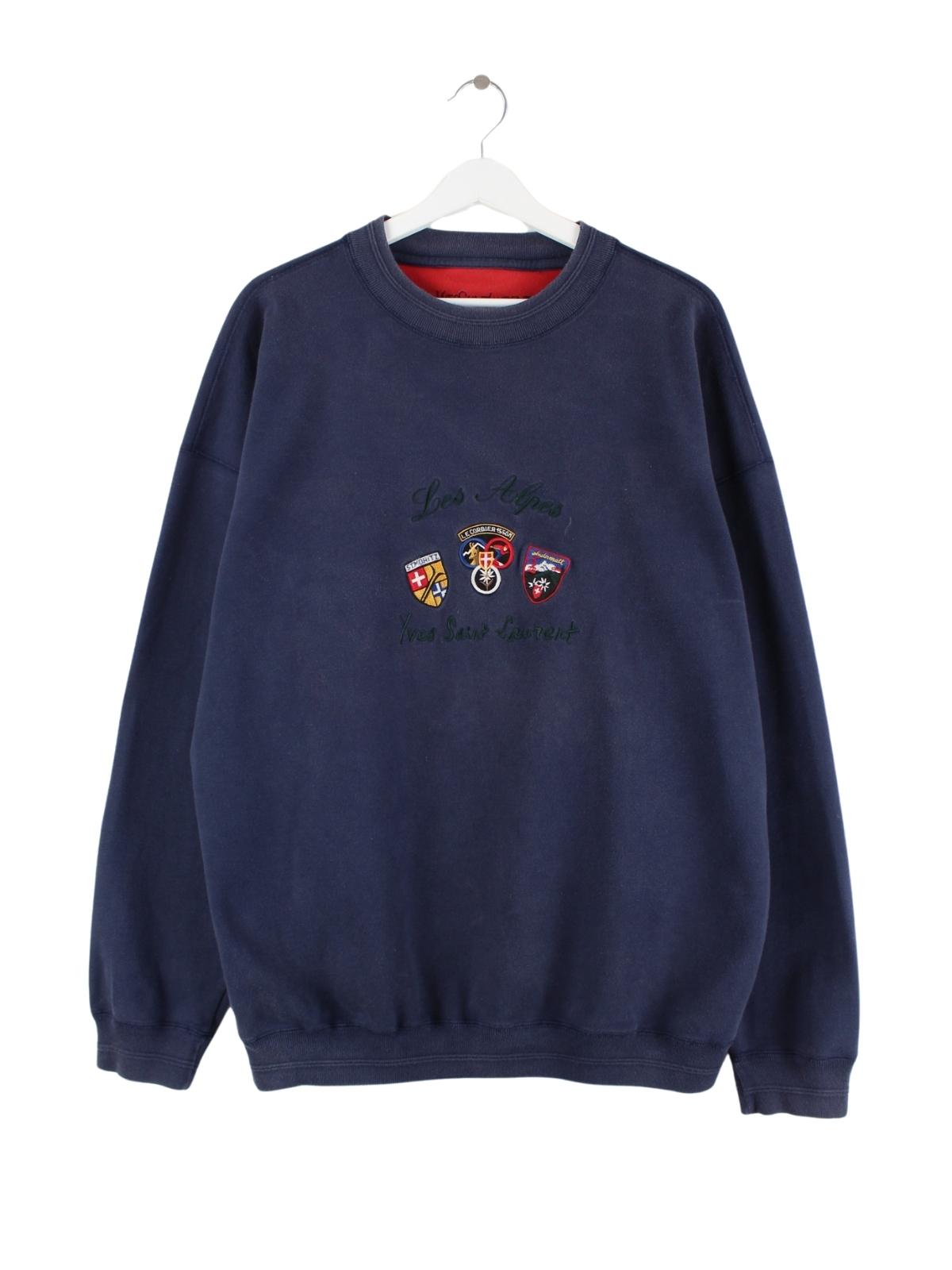 Yves Saint Laurent 90s Vintage Les Alpes Embroidered Sweater Blau XL