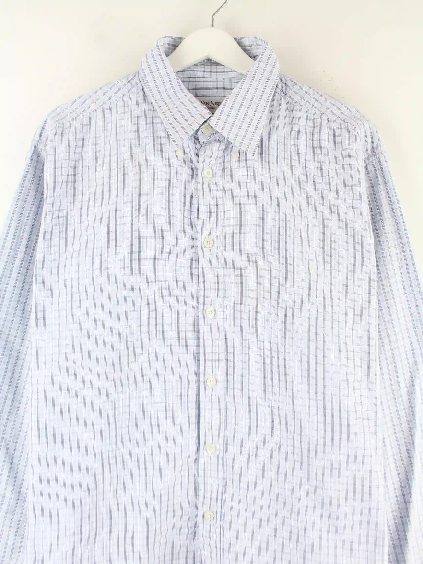 Blaues Hemd der Brand Yves Saint Laurent aus den 90'ern in Größe XL. Es ist aus Baumwolle gemacht und in sehr gutem Zustand zu bekommen.