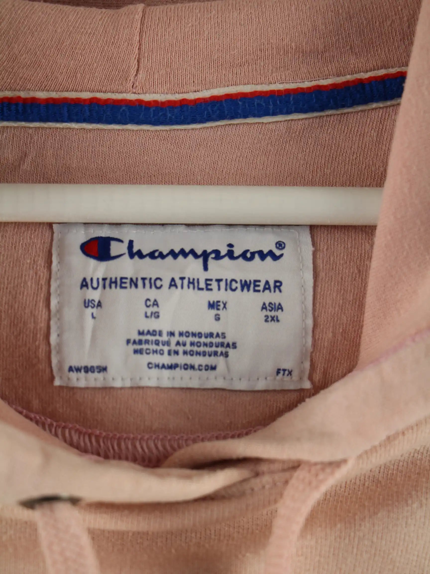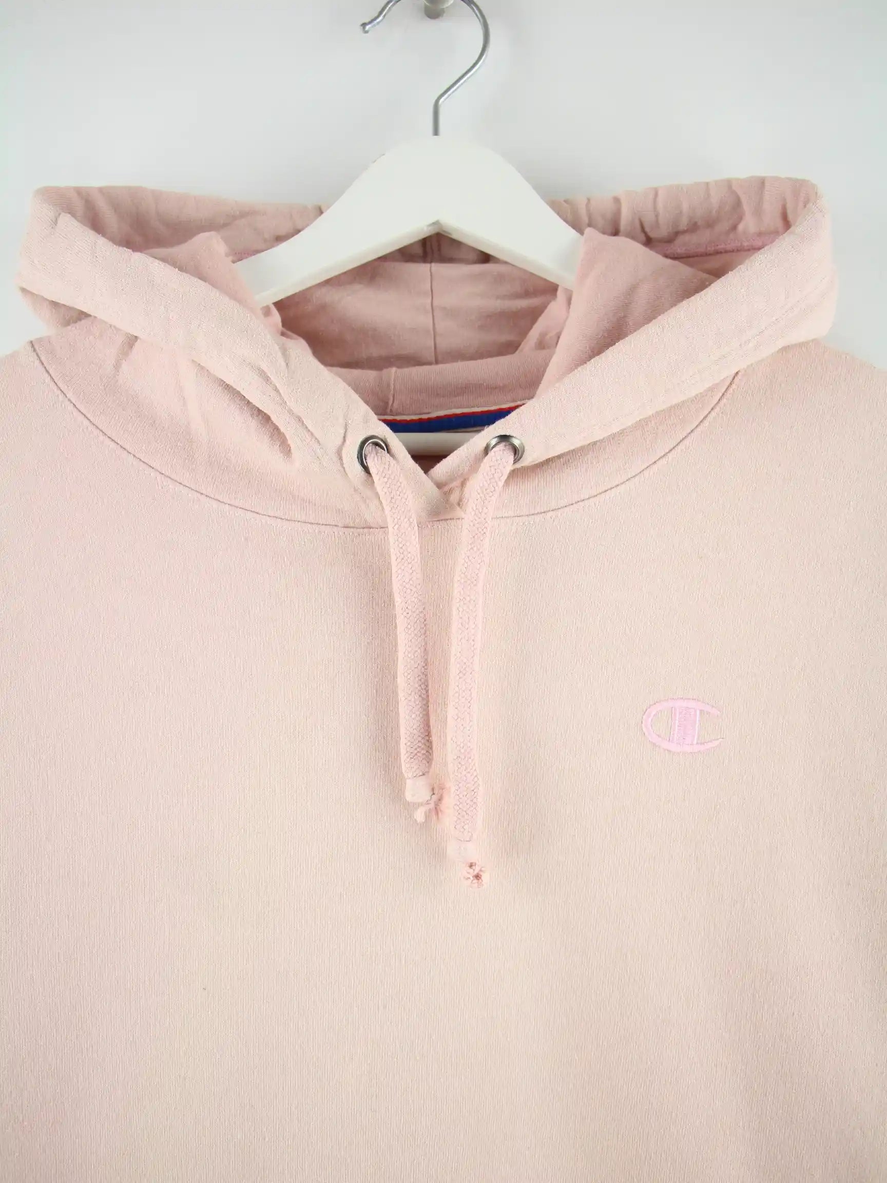 Hoodie vom Brand Champion in Größe L. Er ist aus einer Baumwollmischung hergestellt und in Rosa im Bestand.