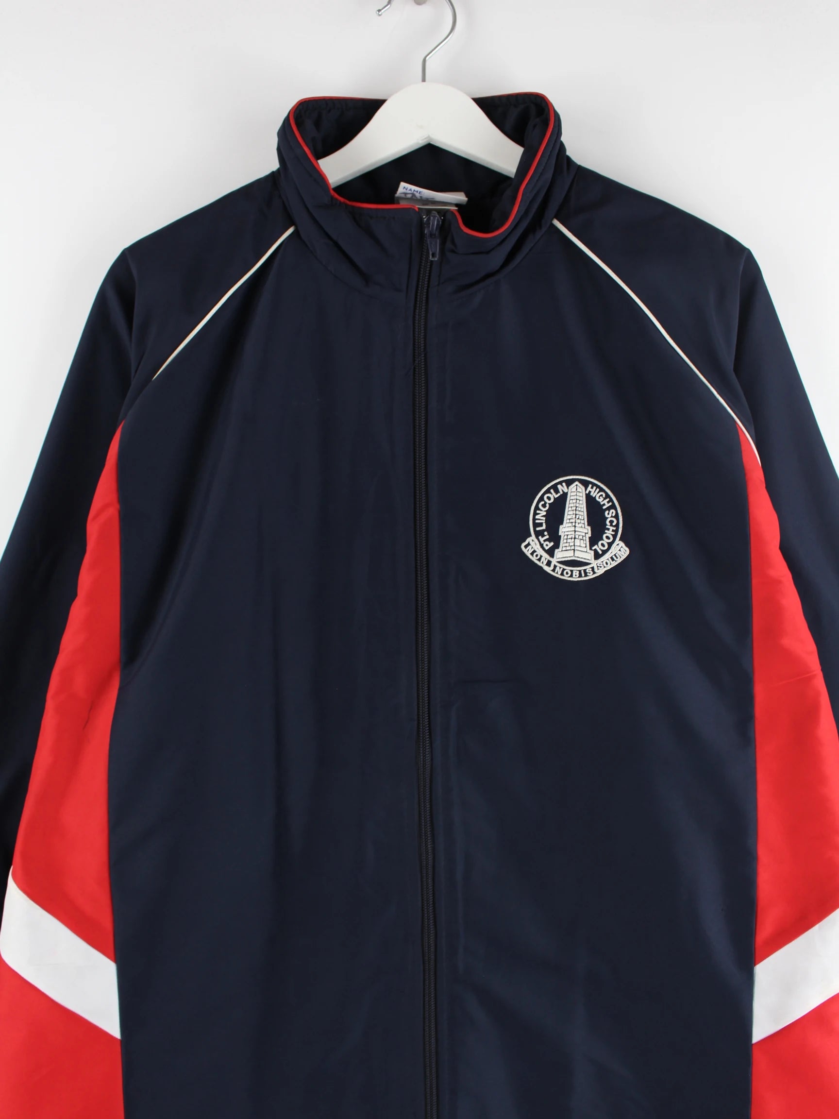 Blaue Trainingsjacke vom Label Champion in Größe XL. Sie ist aus Synthetik angefertigt und in gutem Zustand in Stock.
