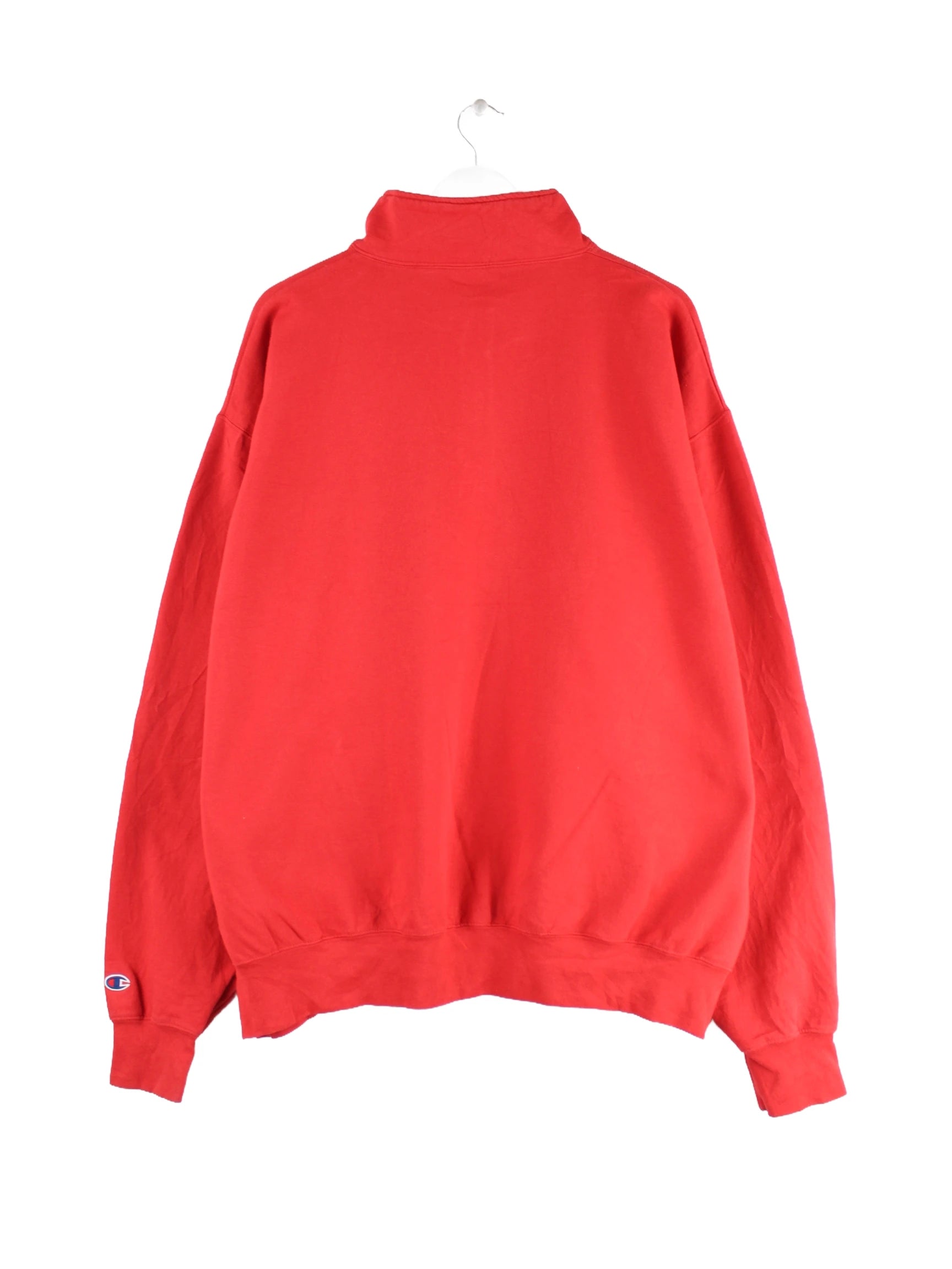 Roter Sweater mit half Zip vom Label Champion in Größe XXL. Er ist aus einer Baumwollmischung gefertigt und in sehr gutem Zustand bei uns vorrätig.