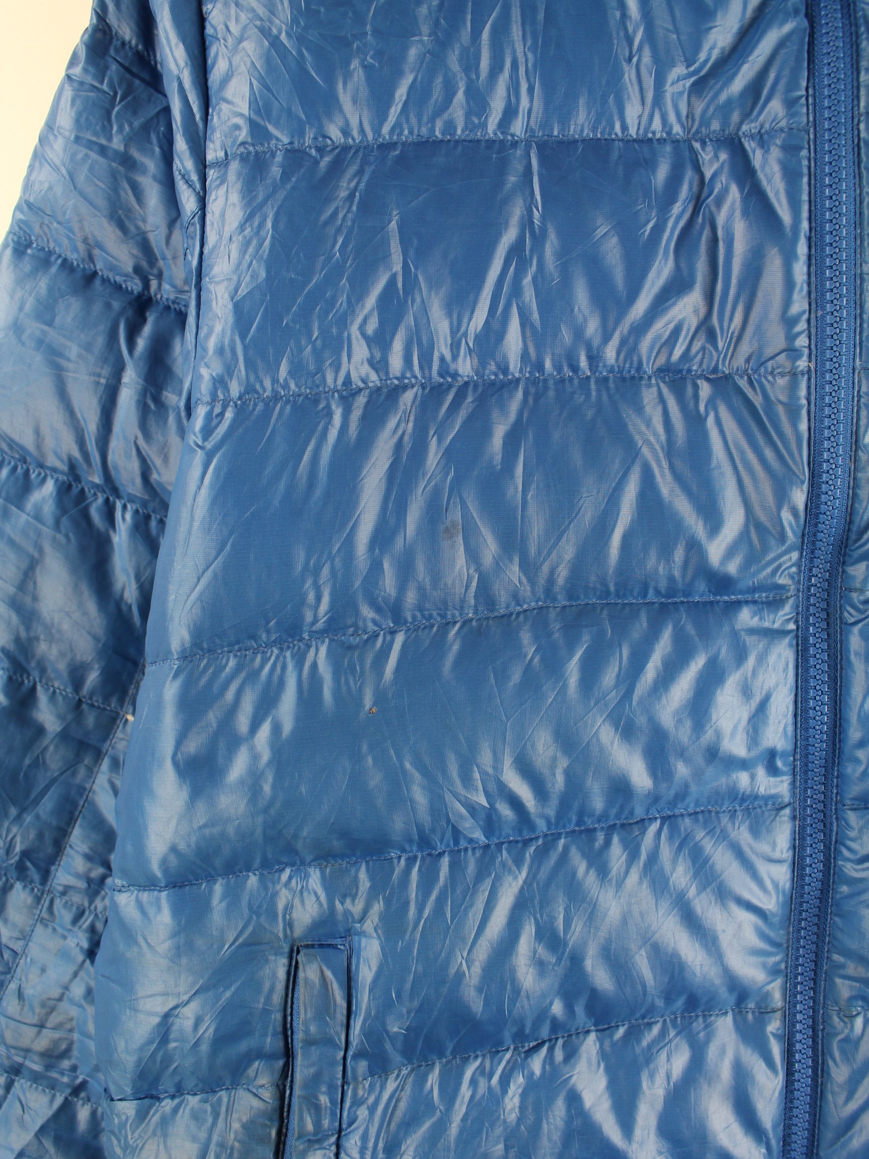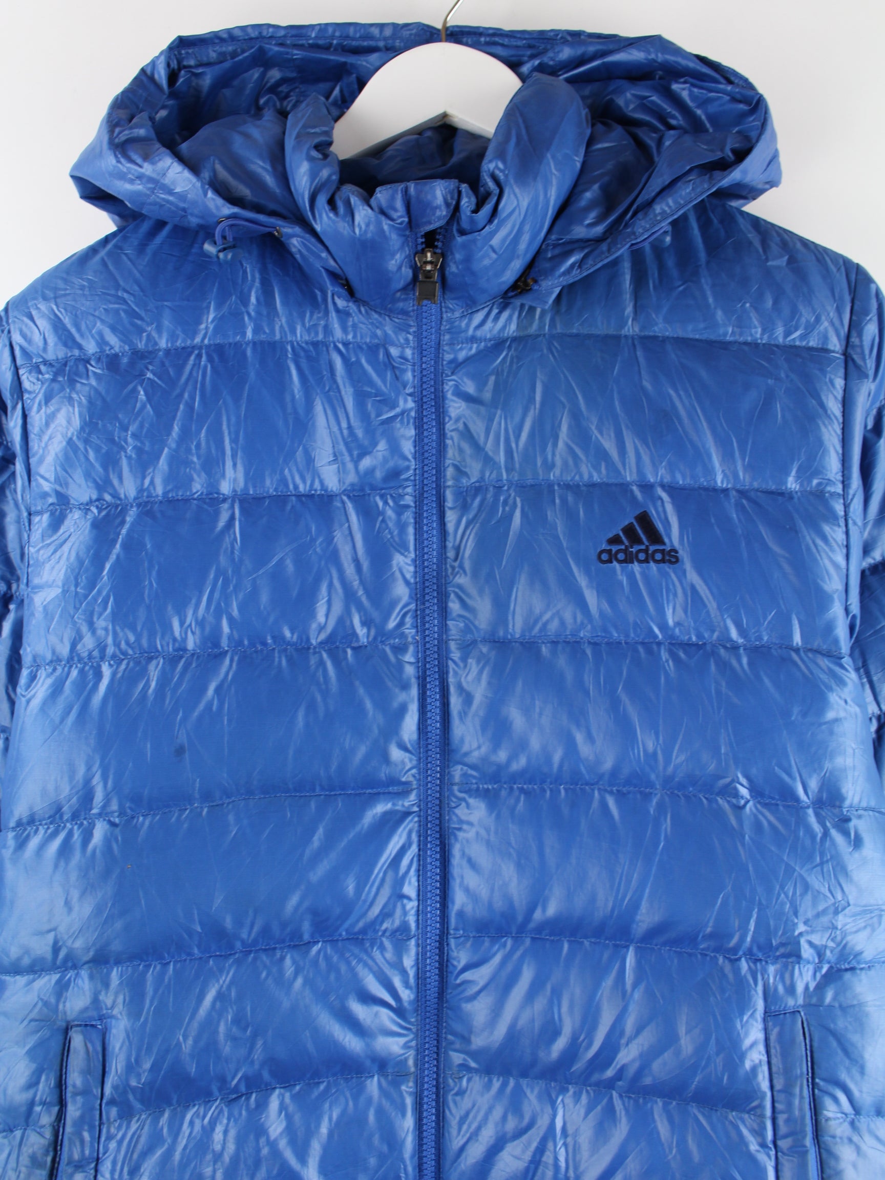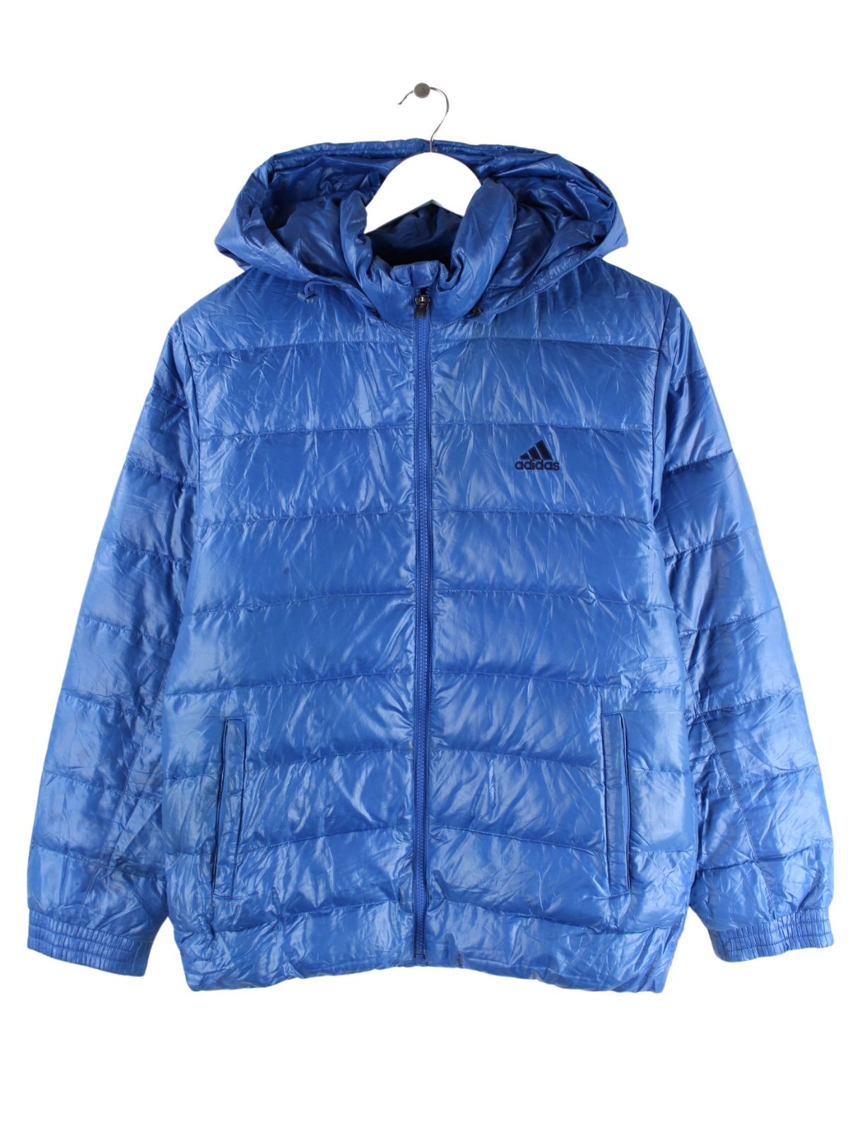 Jacke der Marke Adidas in Größe S aus Anfang der 2000'er. Sie ist aus Synthetik gefertigt und in Blau im Bestand.