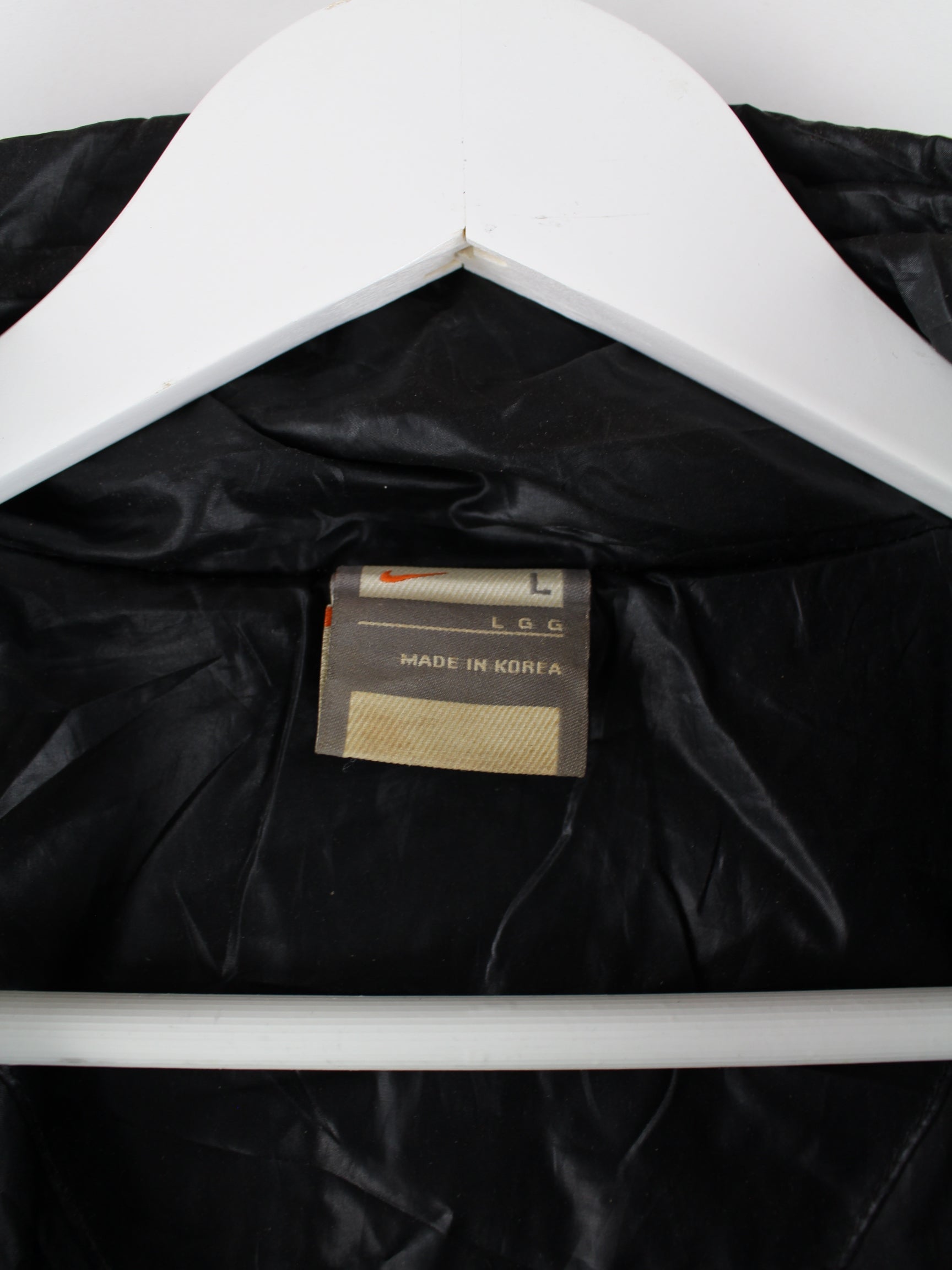 Jacke vom Label Nike in Größe L. Sie ist aus Synthetik gemacht und in Schwarz im Angebot.