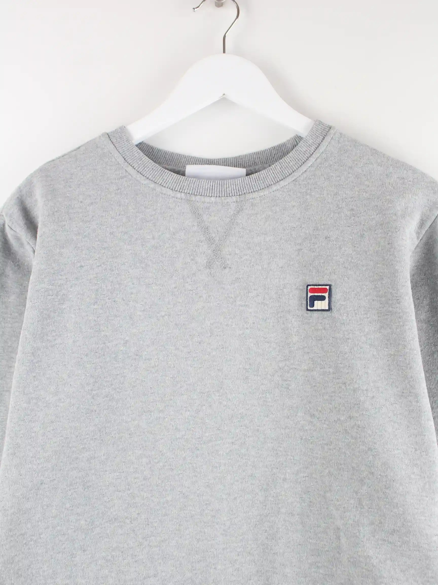 Grauer Sweater der Brand Fila in Größe M. Er ist aus einer Baumwollmischung produziert und in sehr gutem Zustand zu bekommen.