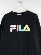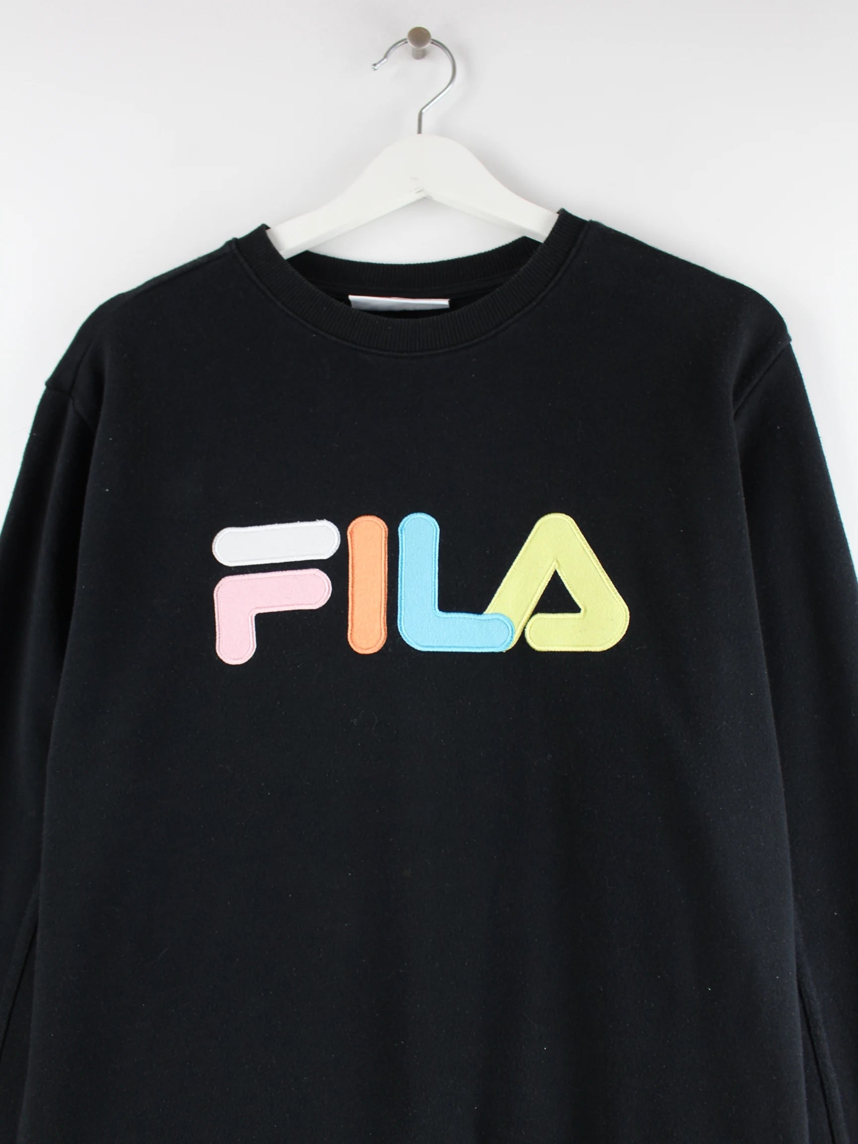 Schwarzer Sweater der Brand Fila in Größe M. Er ist aus einer Baumwollmischung angefertigt und in sehr gutem Zustand auf Lager.