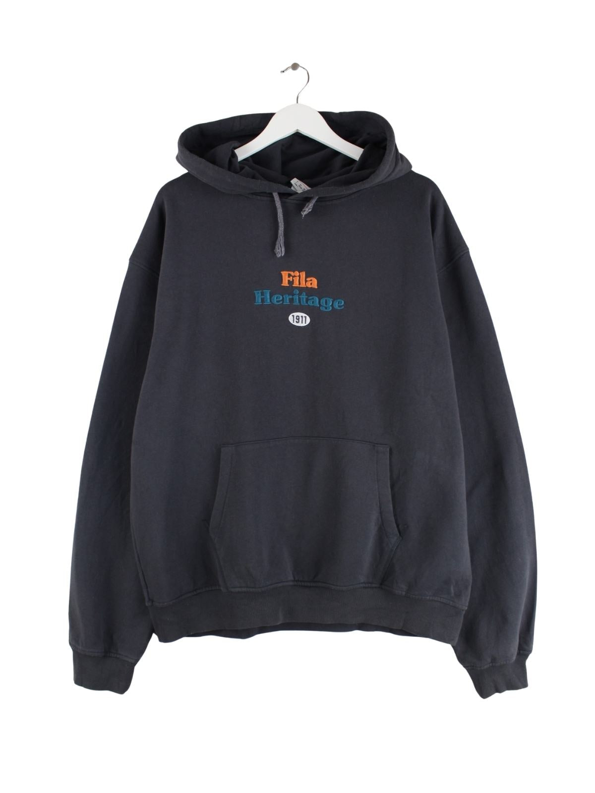 Grauer Hoodie aus dem Hause Fila in Größe XXL. Er ist aus einer Baumwollmischung hergestellt und in gutem Zustand vorrätig.