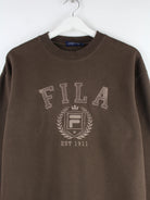 Brauner Sweater vom Label Fila in Größe S. Er ist aus einer Baumwollmischung angefertigt und in sehr gutem Zustand auf Lager.