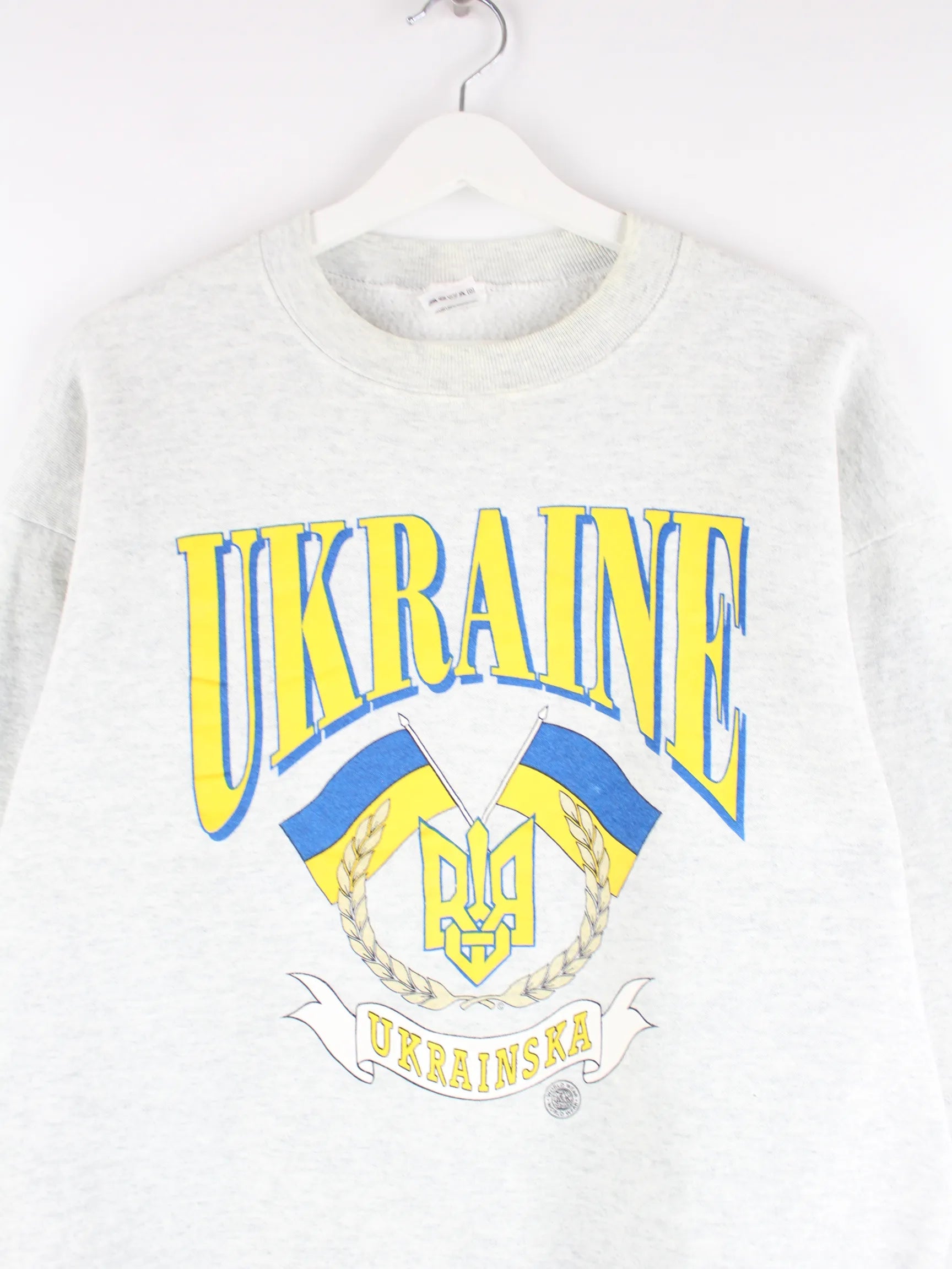 Fruit of the Loom 90s Vintage Ukraine Print Sweater Grau L