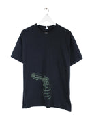 Vintage T-Shirt in Größe L. Es ist aus Baumwolle gefertigt und in Schwarz zu haben. Mit chiquem Print.