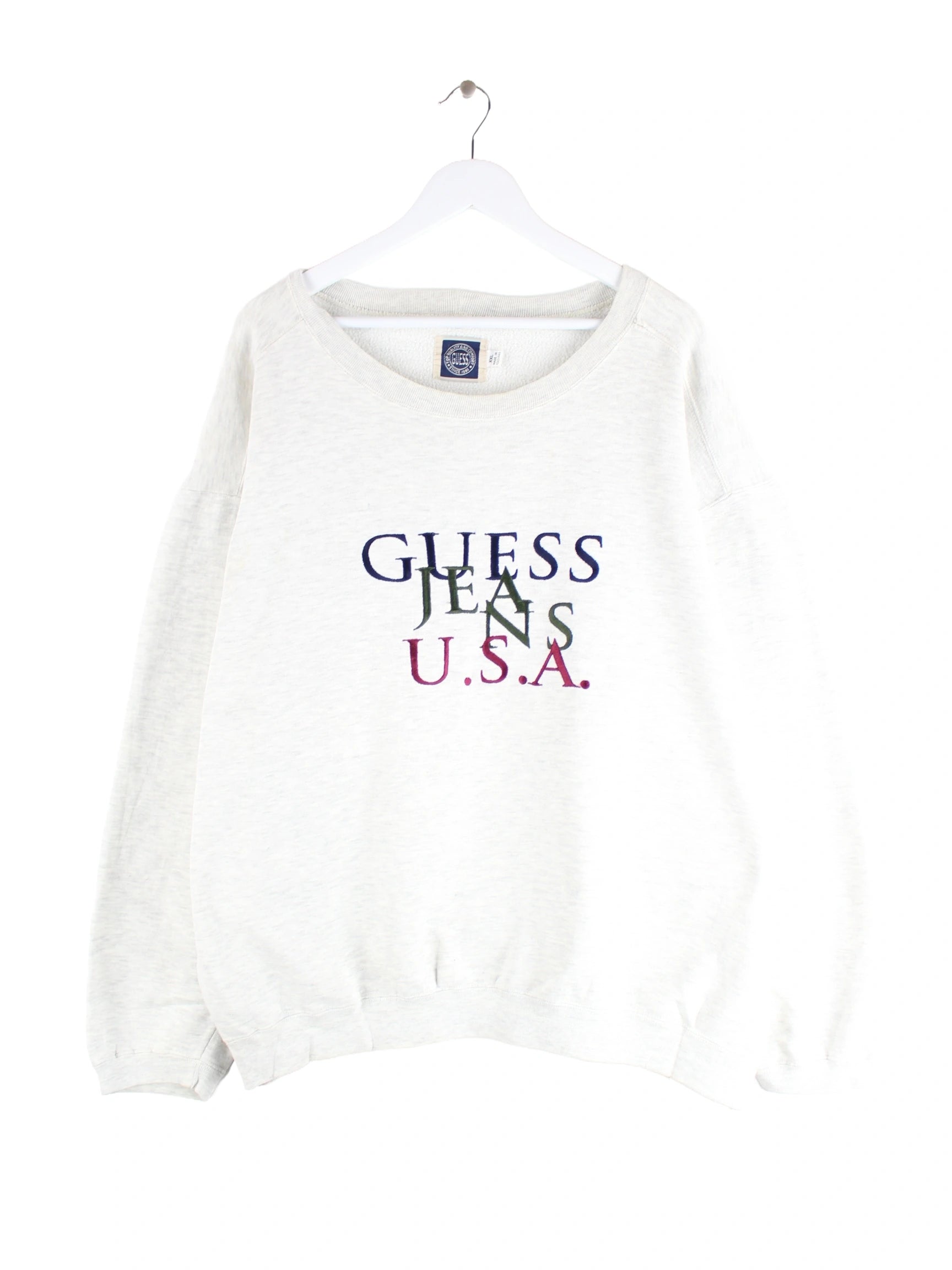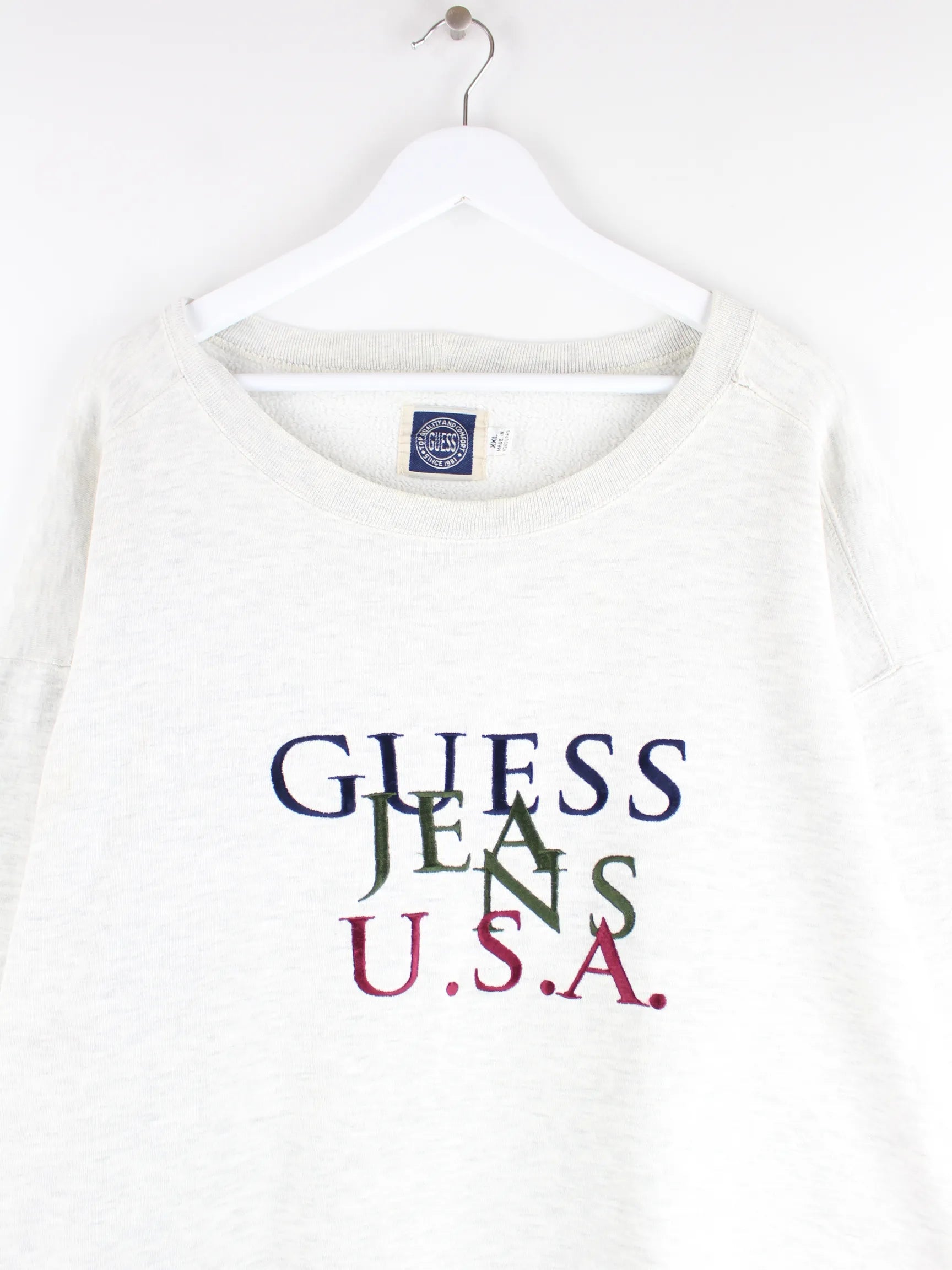 Sweater vom Brand Guess in Größe XXL aus den 90'ern. Er ist aus einer Baumwollmischung gemacht und in Grau in Stock.