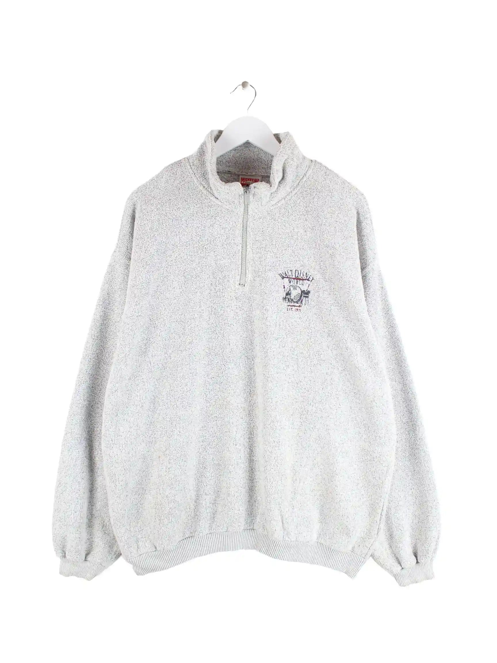 Grauer Sweater mit half Zip der Marke Disney aus den 90'ern in Größe XXL. Er ist aus einer Baumwollmischung gefertigt. Den Zustand würden wir als 'In Ordnung' bezeichnen (vergl. Bilder).