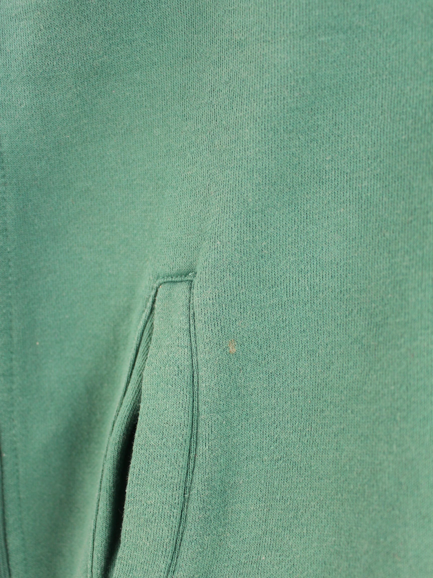 Vintage Sweater mit gesticktem Logo und kurzem Reißverschluß in Größe L. Er ist aus einer Baumwollmischung hergestellt und in Grün in Stock.