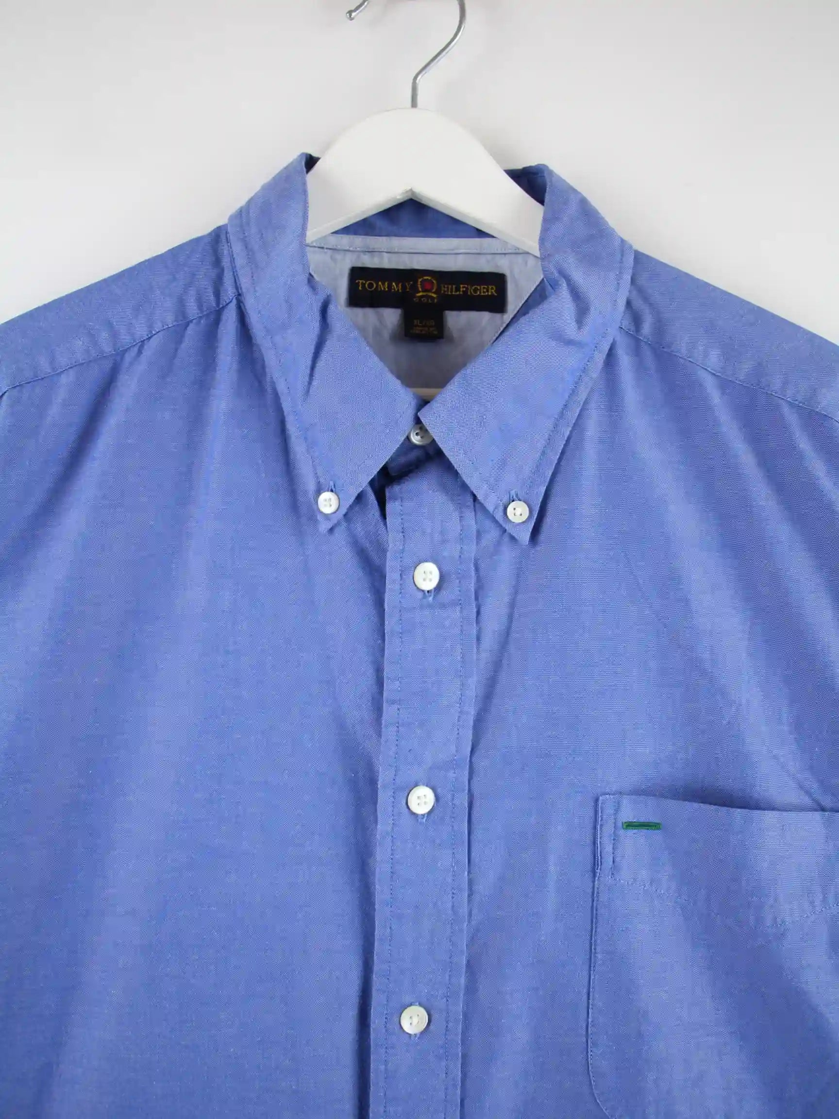 Blaues Hemd der Brand Tommy Hilfiger in Größe XL. Es ist aus Baumwolle angefertigt und in gutem Zustand im Bestand.