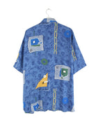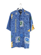 Vintage 90s Crazy Pattern Kurzarm Hemd Blau XXL
