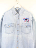 Vintage 90s Super Tourins Embroidered Jeans Hemd Blau L