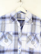 Vintage Freizeit Hemd in Größe M. Es ist aus Baumwolle gemacht und in Blau lieferbar.