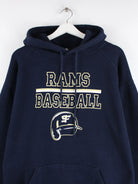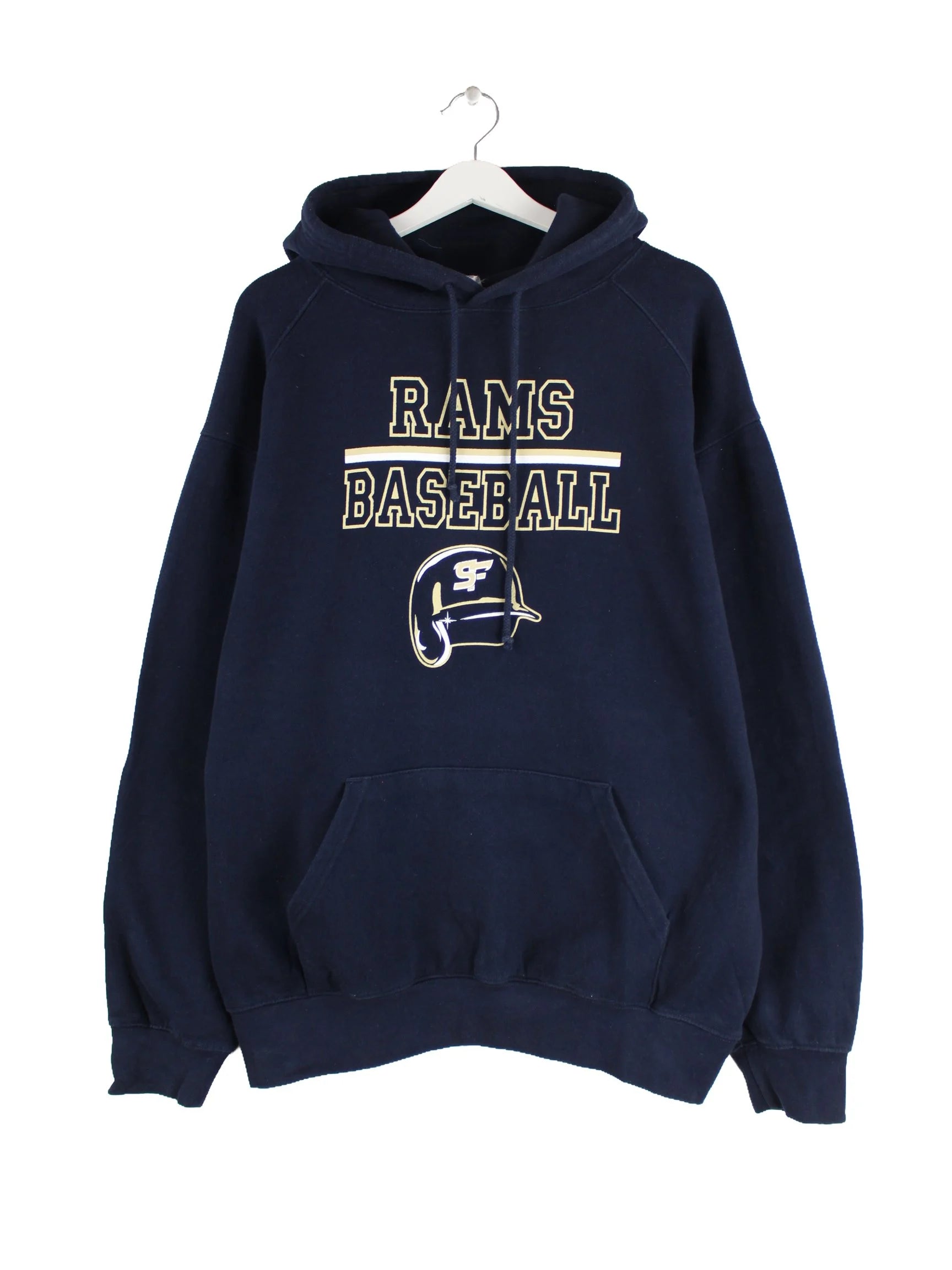 Blauer Vintage Hoodie in Größe XL. Er ist aus einer Baumwollmischung und in sehr gutem Zustand vorrätig. Mit chiquem Baseball Print.