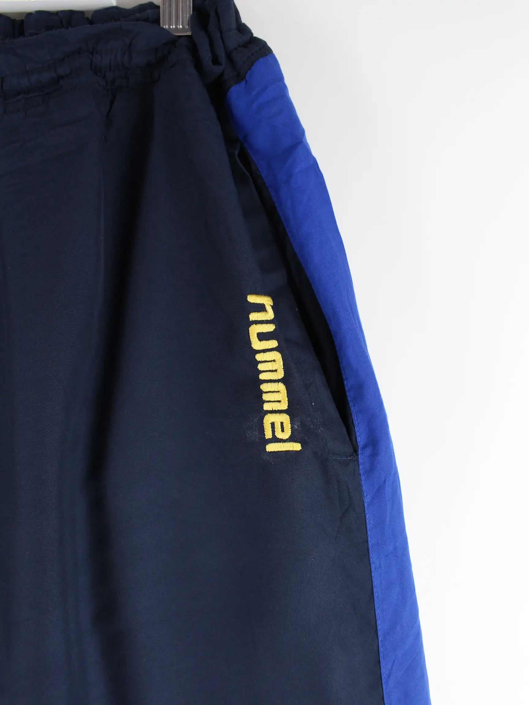 Track Pants von Hummel in Größe M aus den 90'ern. Sie sind aus Synthetik produziert und in Blau zu bekommen.