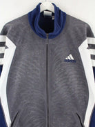 Trainingsjacke des Labels Adidas in Größe L aus den 90'ern. Sie ist aus Synthetik und in Grau bei uns zu bekommen.