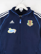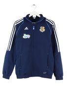 Blaue Trainingsjacke vom Label Adidas in Größe S. Sie ist aus Synthetik hergestellt und in sehr gutem Zustand bei uns zu bekommen. Mit seltenem Print.