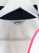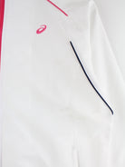 Trainingsjacke der Brand Asics in Größe M. Sie ist aus Synthetik angefertigt und in Weiß zu bekommen.