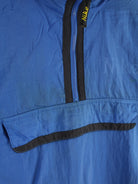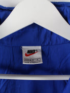 Blauer Windbreaker vom Brand Nike aus den 90'ern in Größe XS. Er ist aus Synthetik angefertigt und in gutem Zustand zu bekommen. Mit schickem Vintage Print.