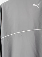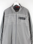 Graue Trainingsjacke vom Brand Puma in Größe XXL. Sie ist aus Synthetik angefertigt und in gutem Zustand bei uns vorrätig. Mit chiquem Print.