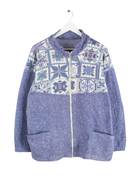 Vintage 80s Crazy Pattern Fleece Jacke Blau L