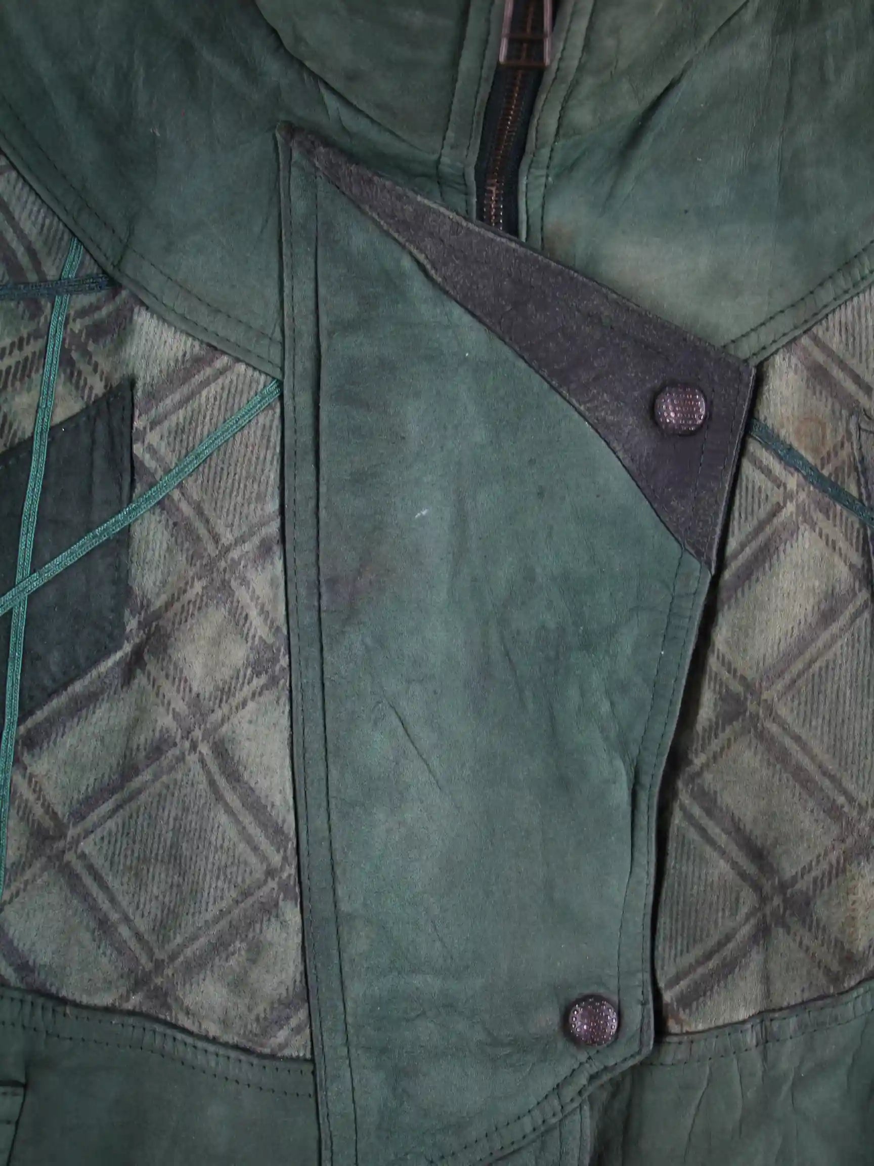 Vintage 80s Izzy Crazy Pattern Leder Jacke Grün M