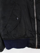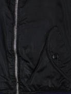 Schwarze Vintage Leichte Jacke aus den 90'ern in Größe L. Sie ist aus Synthetik hergestellt. Den Zustand würden wir als 'In Ordnung' bezeichnen (vergl. Bilder).