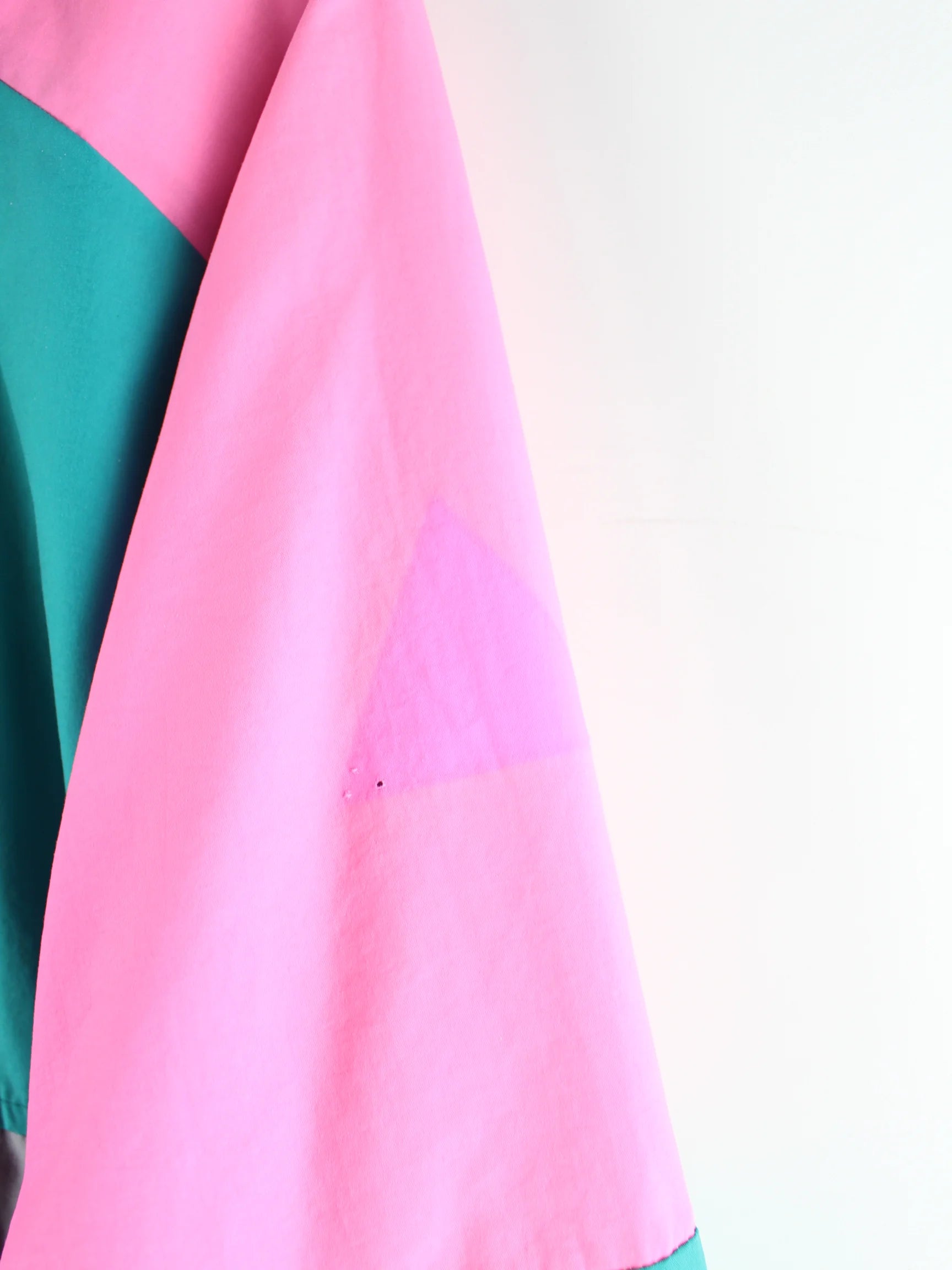 Vintage Windbreaker in Größe L aus den 90'ern. Er ist aus Synthetik und in Grün im Bestand.