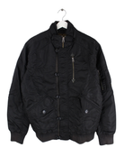 Vintage Jacke in Größe M. Sie ist aus Synthetik und in Schwarz lieferbar.