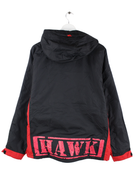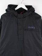 Schwarze Vintage Leichte Jacke in Größe L. Sie ist aus Synthetik gefertigt und in sehr gutem Zustand bei uns zu bekommen. Mit schickem Hawk Print.