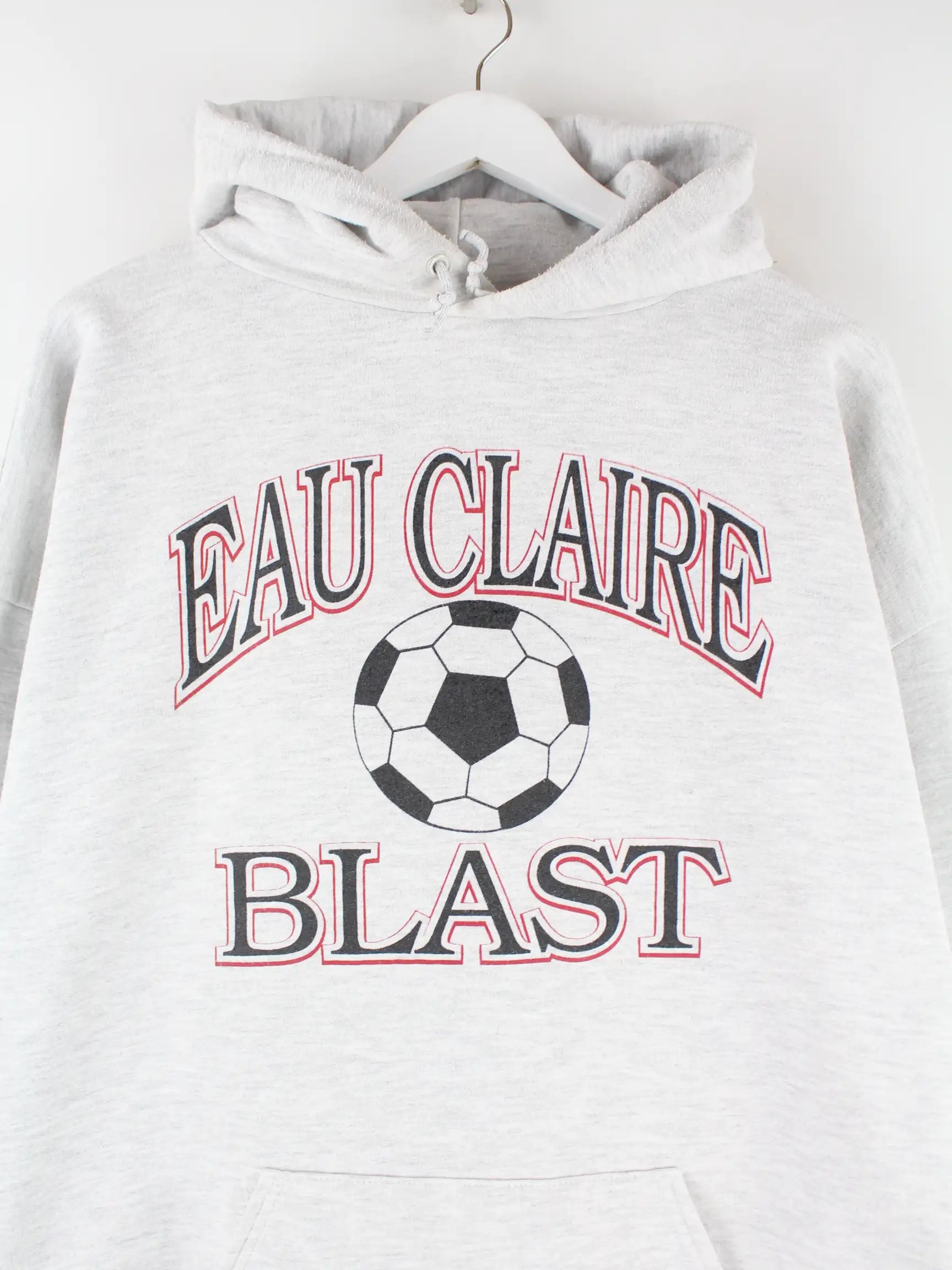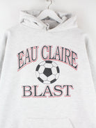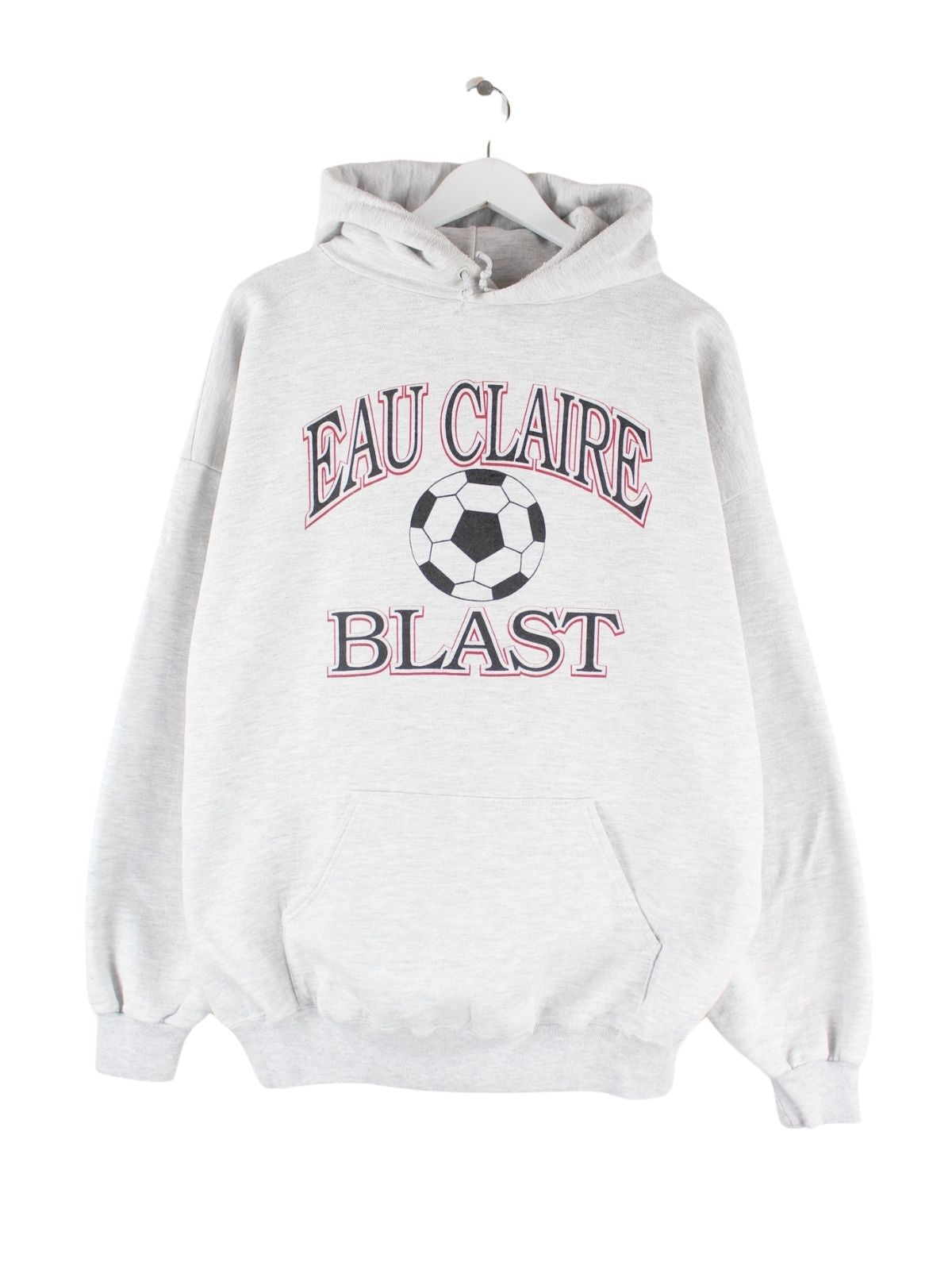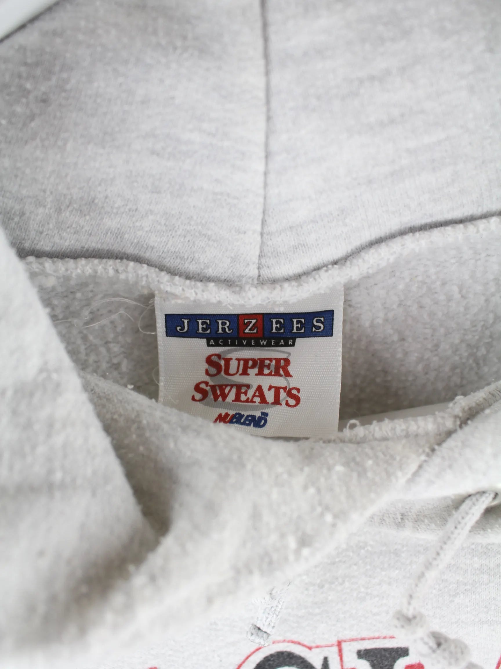 Hoodie der Brand Jerzees in Größe M. Er ist aus einer Baumwollmischung hergestellt und in Grau lieferbar. Mit seltenem Football Print.
