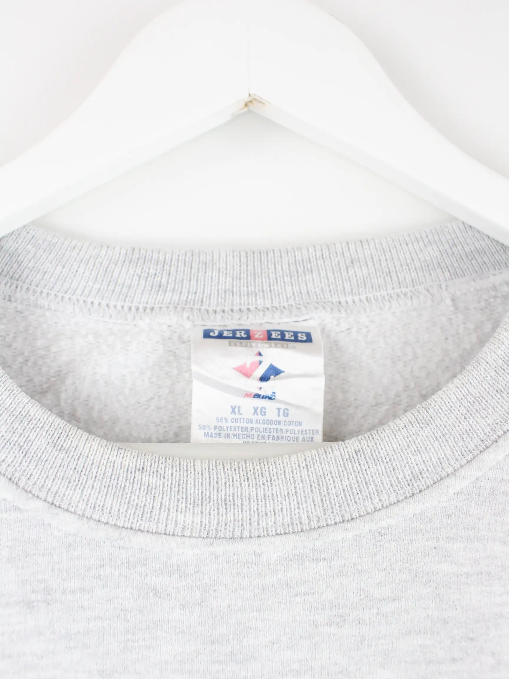 Vintage Print Sweater von Jerzees in Größe XL. Er ist aus einer Baumwollmischung produziert und in Grau im Angebot.