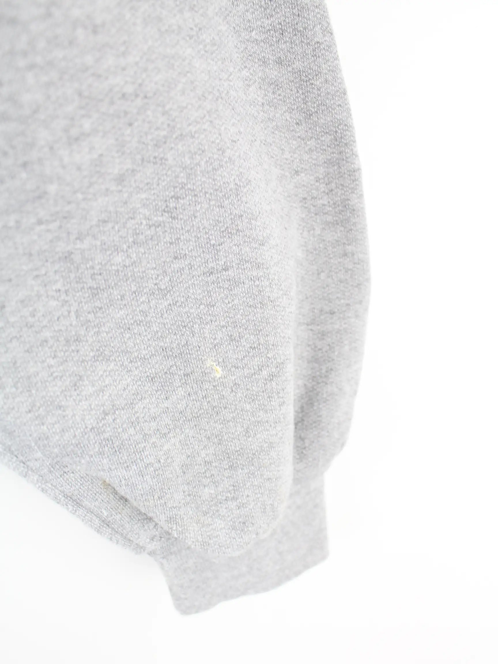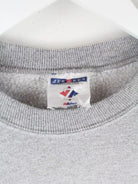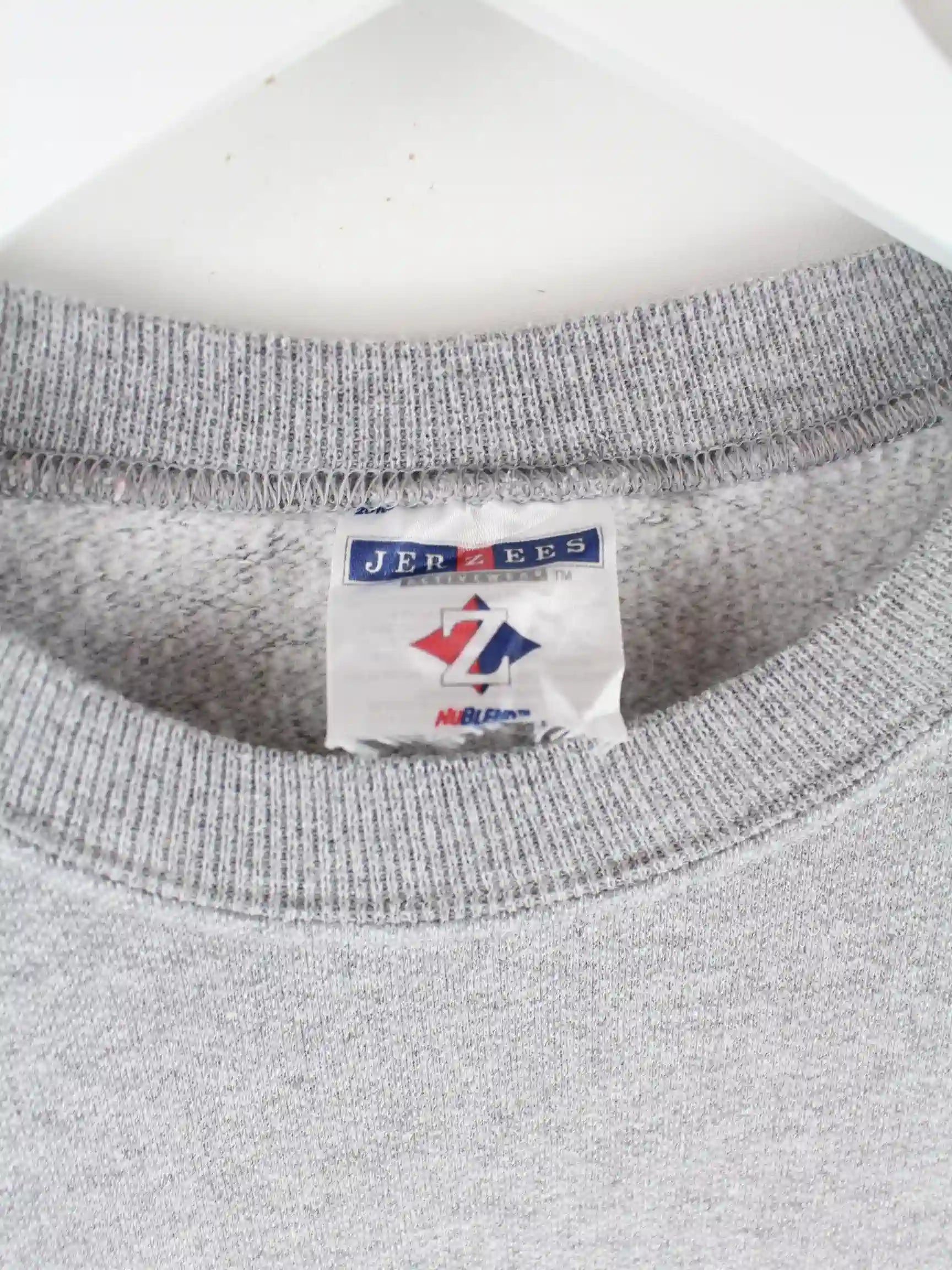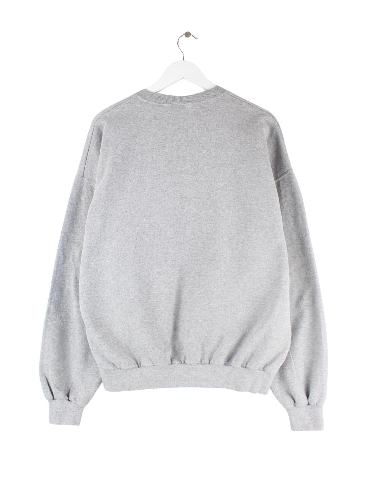 Grauer Sweater mit Stickereien des Labels Jerzees in Größe L. Er ist aus einer Baumwollmischung und in gutem Zustand in Stock.