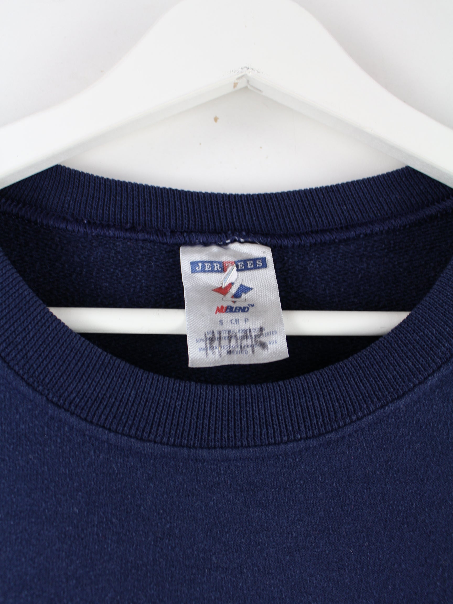 Blauer Sweater aus dem Hause Jerzees aus den 90'ern in Größe S. Er ist aus einer Baumwollmischung angefertigt und in sehr gutem Zustand bei uns vorrätig. Mit schickem Columbia Print.