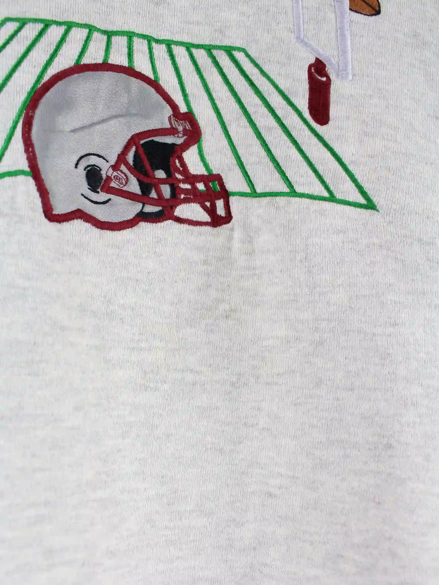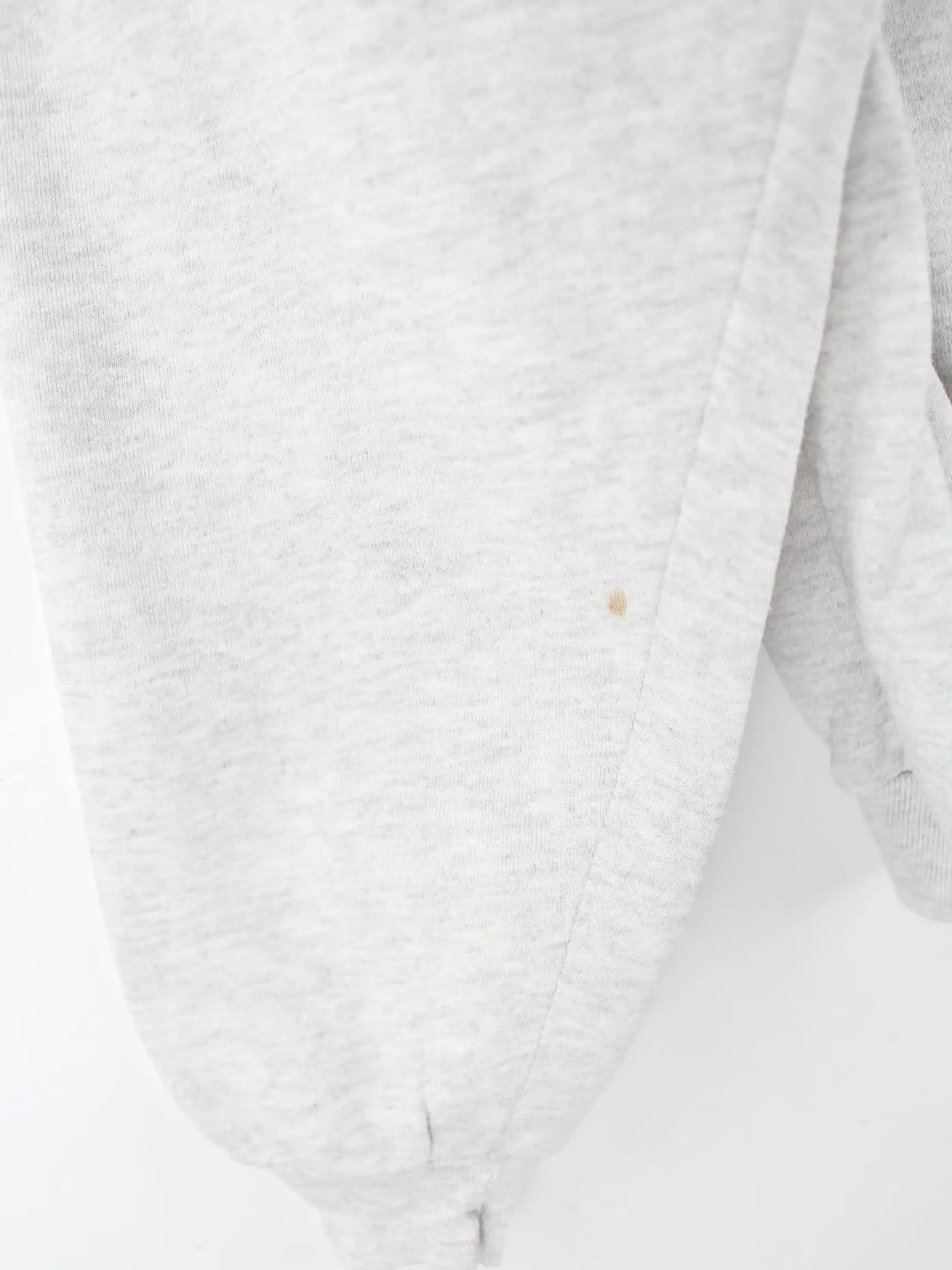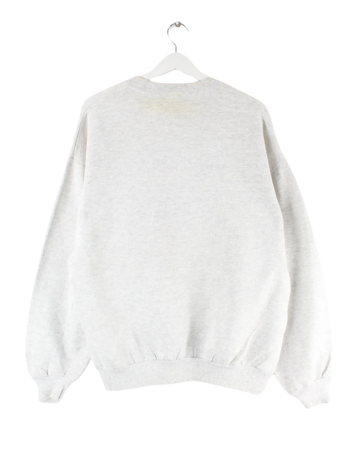Sweater des Labels Jerzees mit Stickereien in Größe XL aus den 90'ern. Er ist aus einer Baumwollmischung angefertigt und in Grau bei uns vorrätig.
