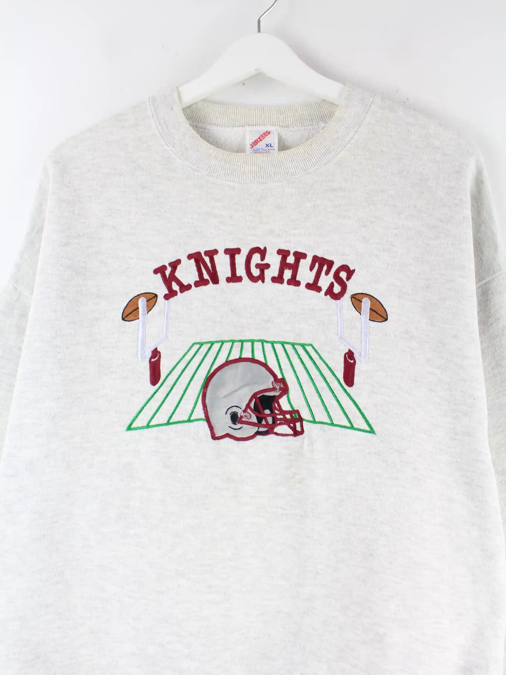 Jerzees 90s Vintage Knights Embroidered Sweater Grau XL