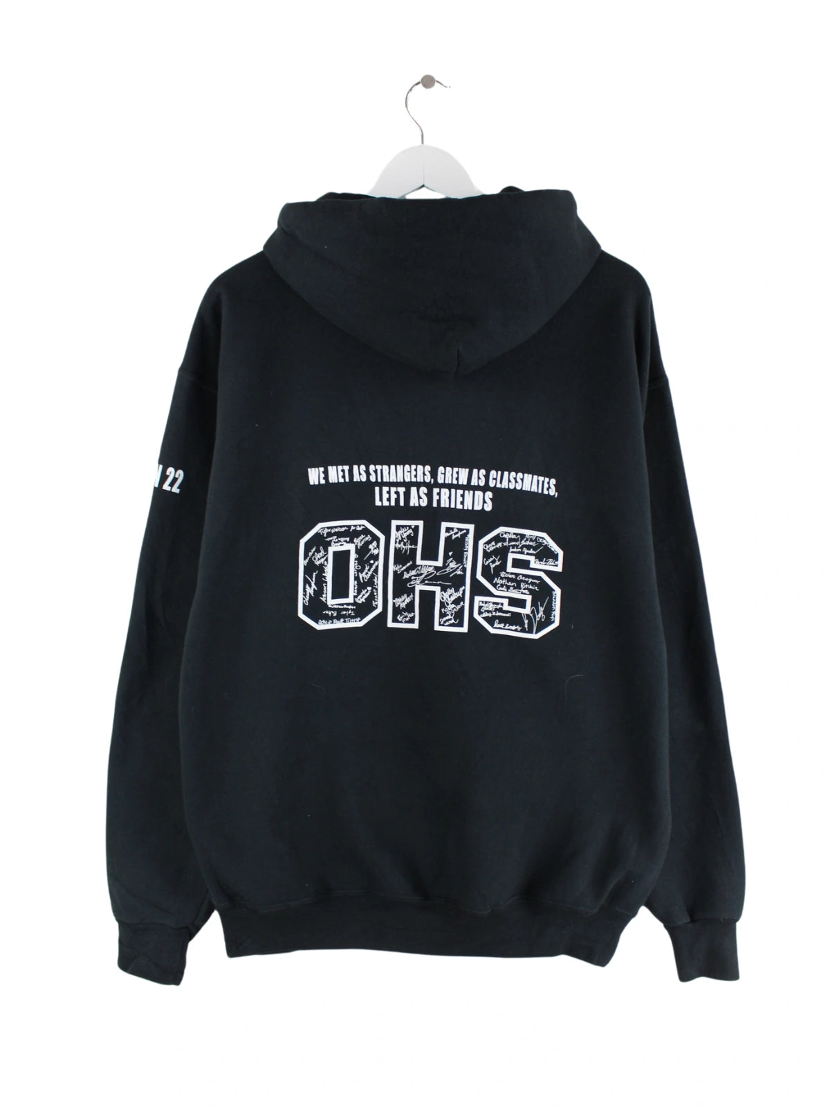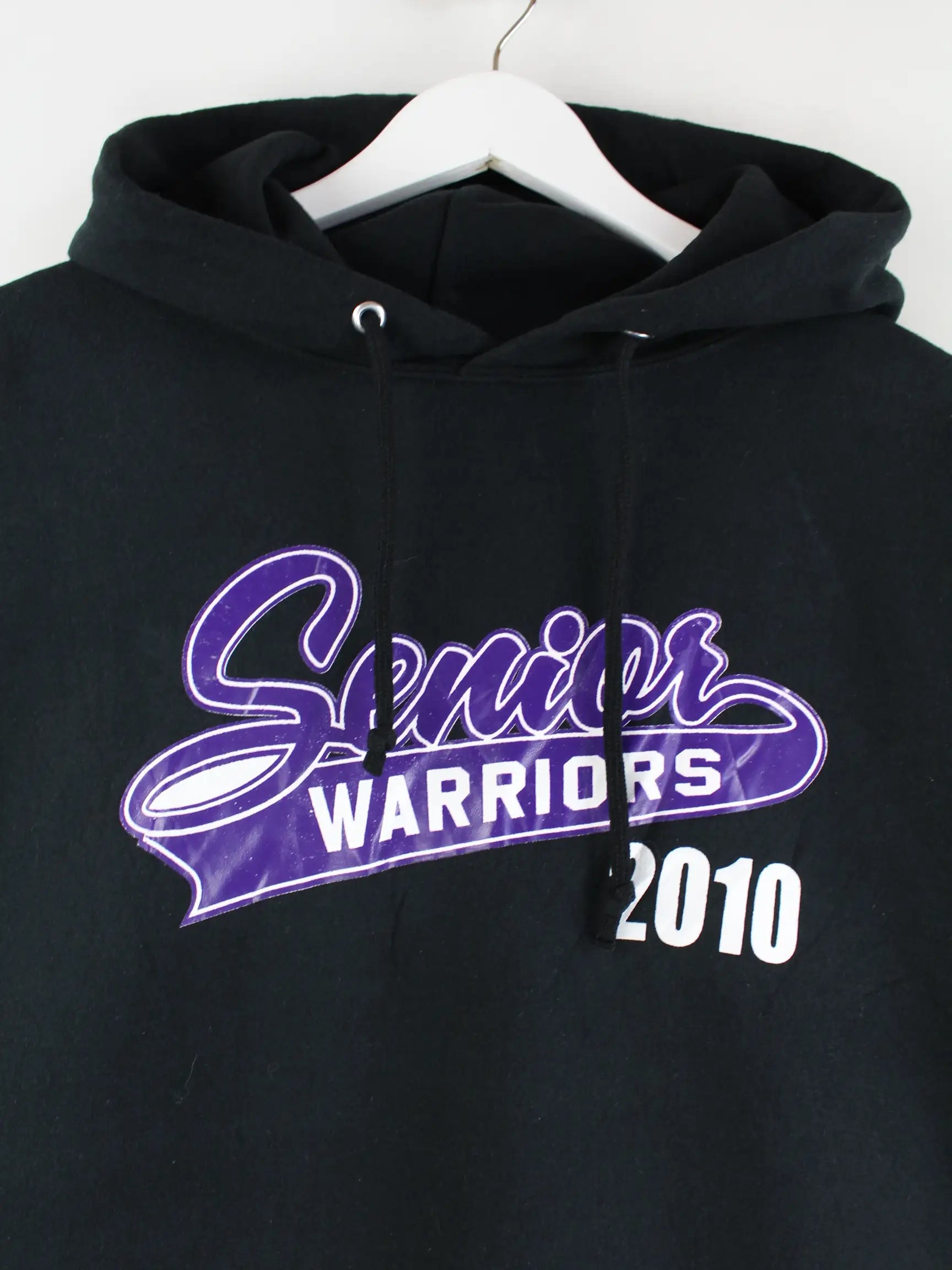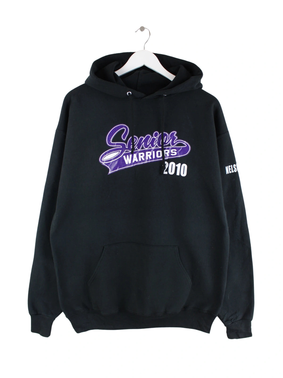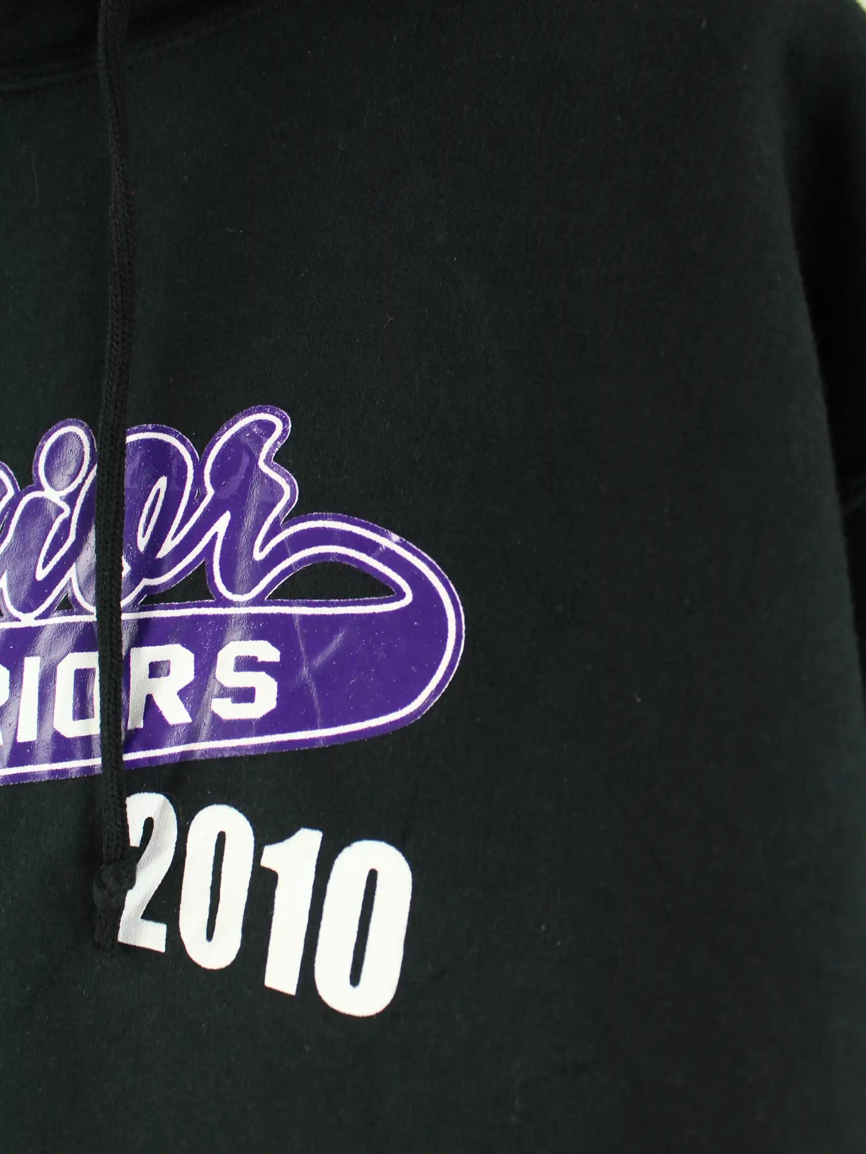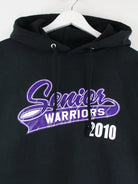 Schwarzer Hoodie des Labels Jerzees in Größe L. Er ist aus einer Baumwollmischung produziert und in gutem Zustand in Stock. Mit tollem Warriors Print.