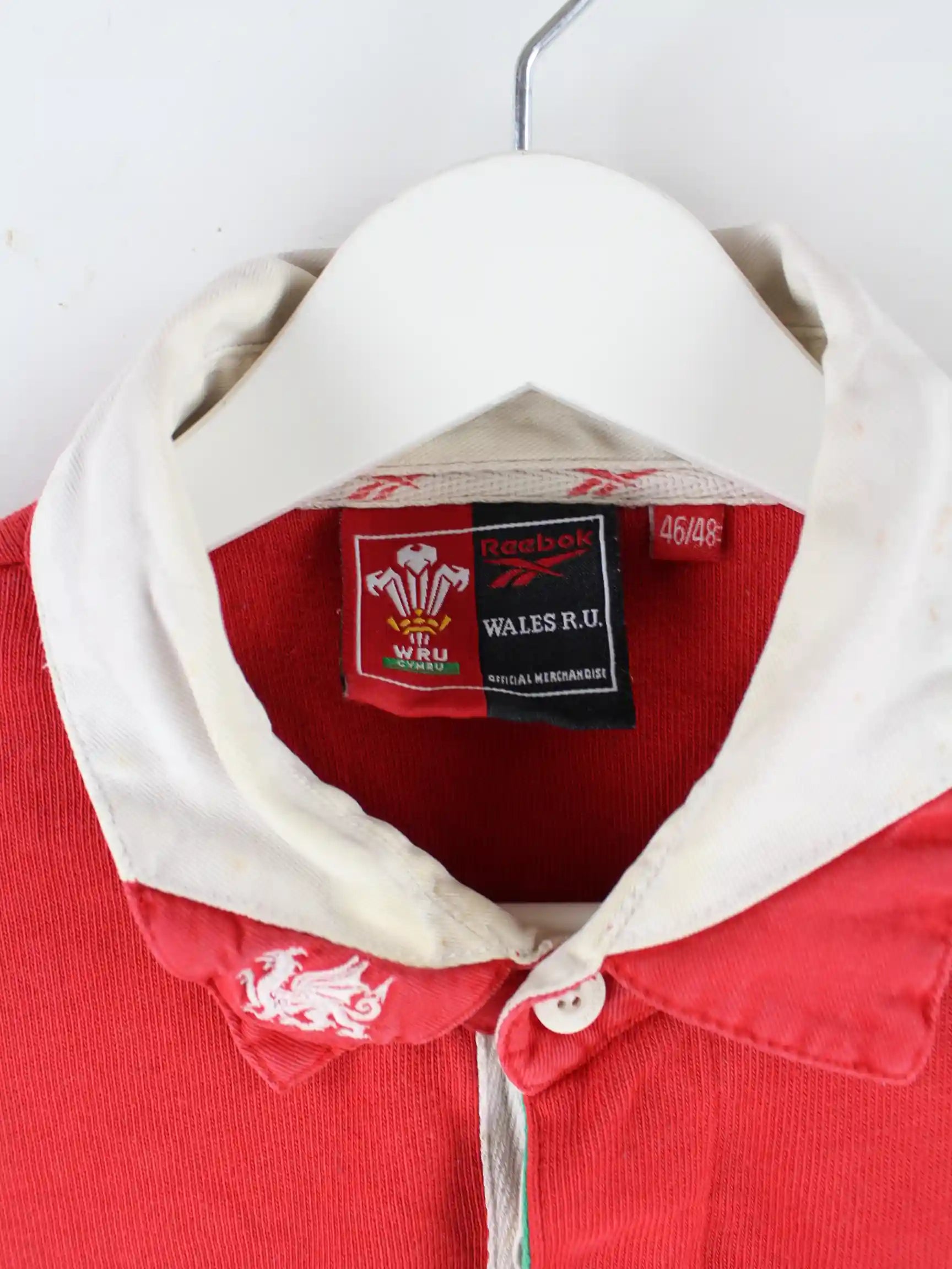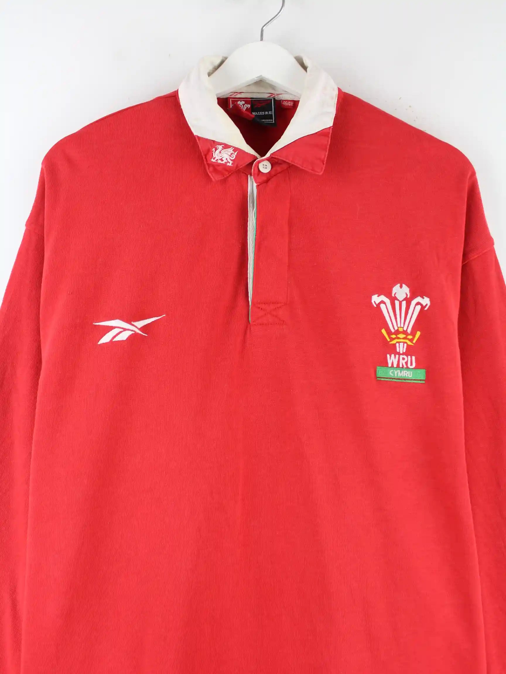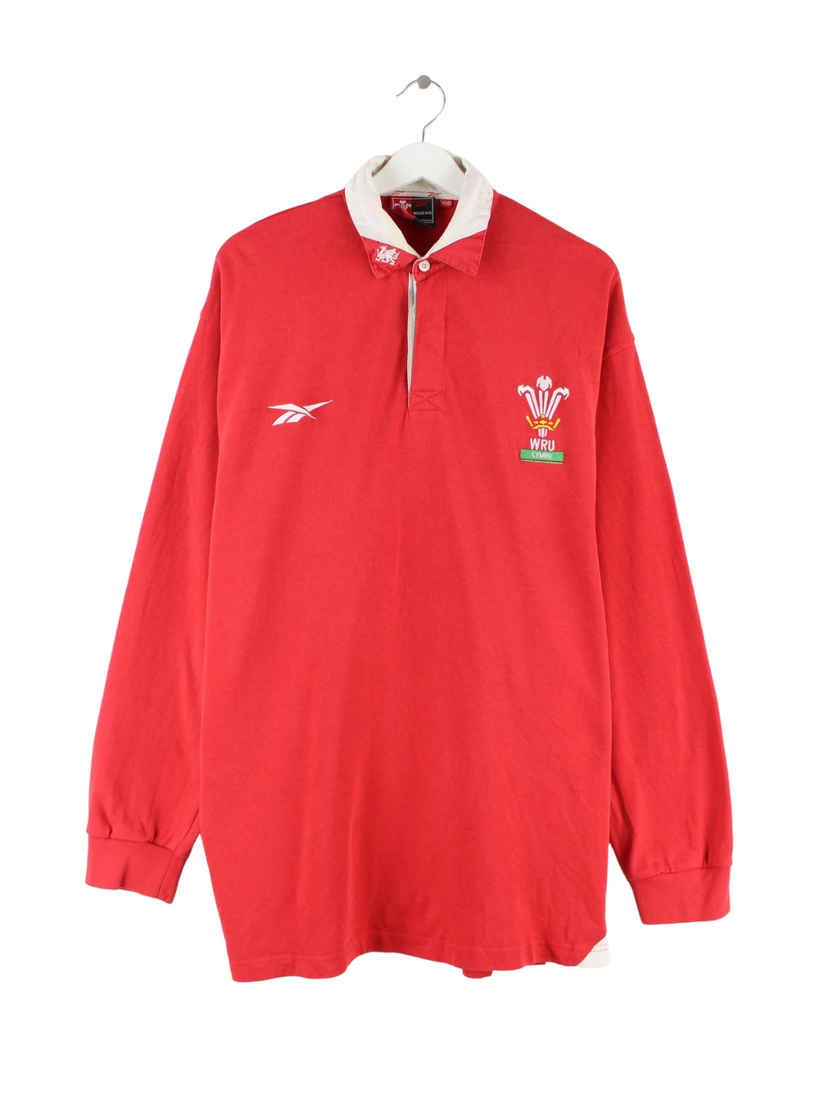 Reebok 90s Vintage Wales Rugby Langarm Polo Rot XXL