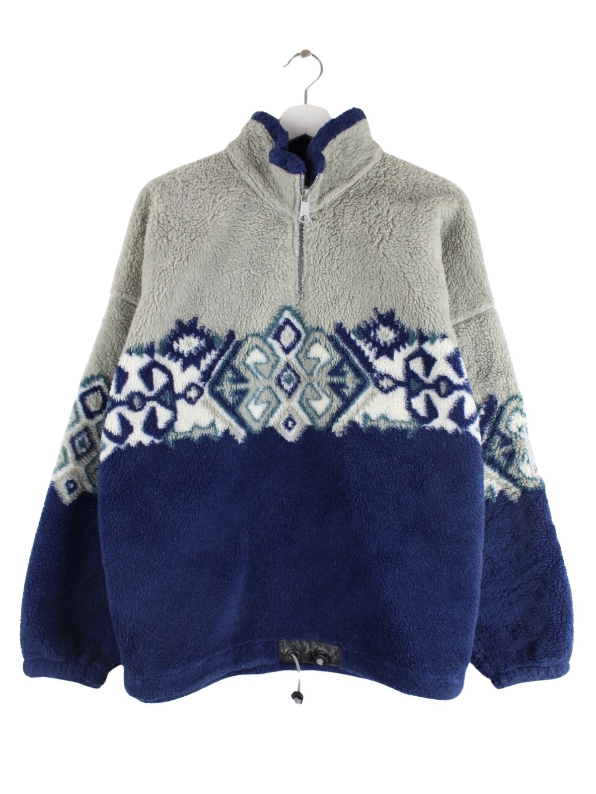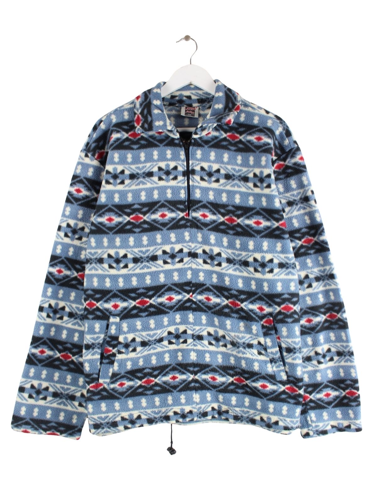 Vintage Crazy Pattern Half Zip Fleece Jacke Blau XXL