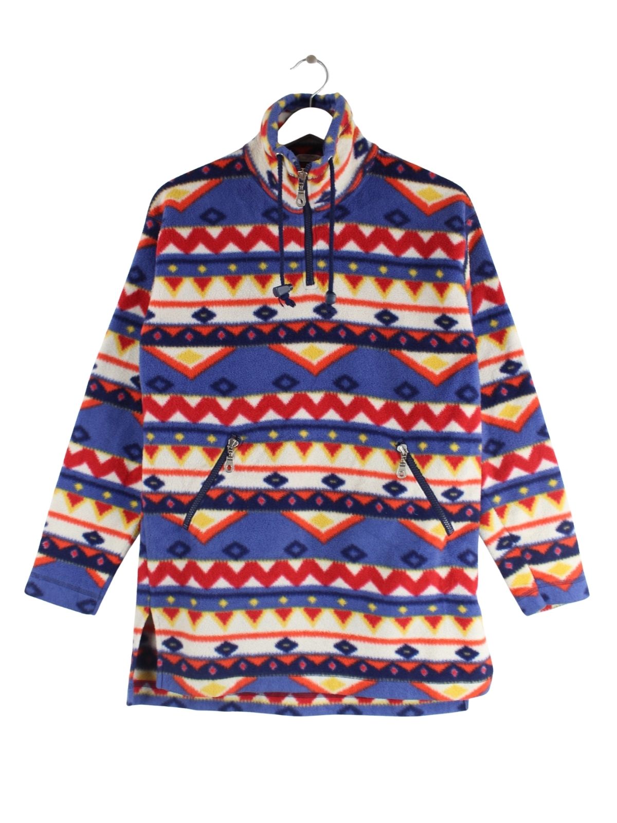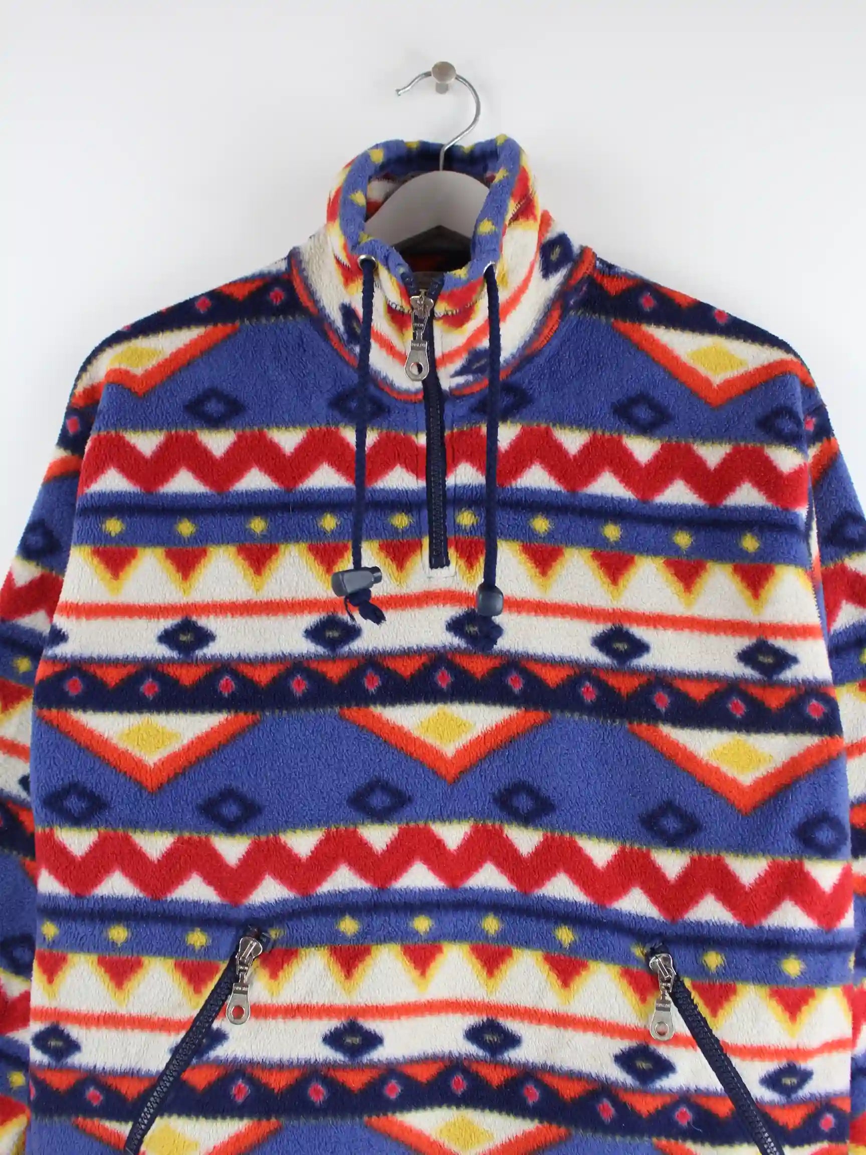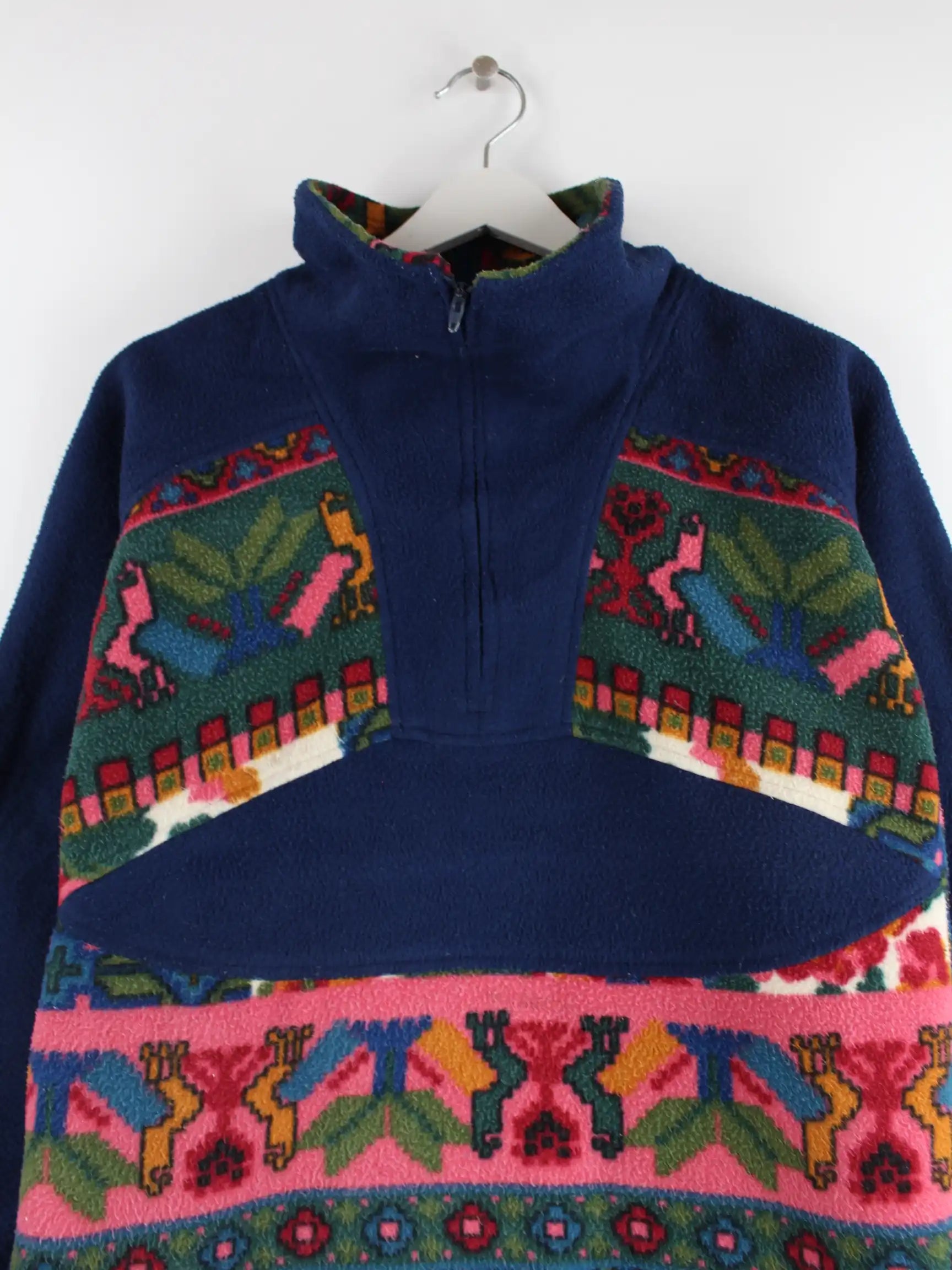 Vintage Damen 90s Crazy Pattern Half Zip Fleece Jacke Blau M