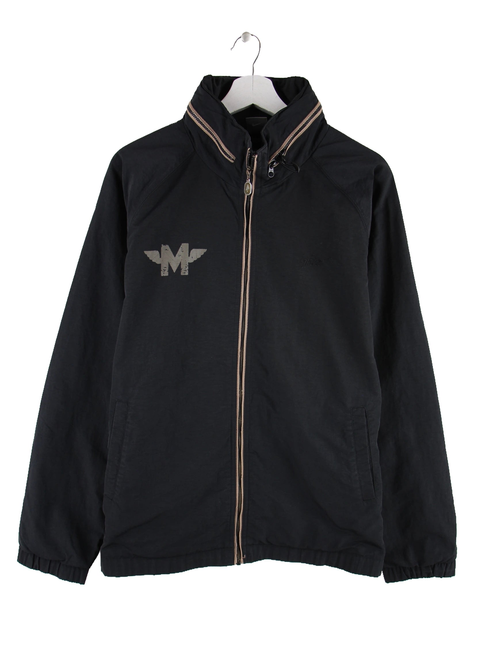 Leichte Jacke der Brand Nike in Größe XL. Sie ist aus Synthetik produziert und in Schwarz in Stock. Mit schickem 00s Print.