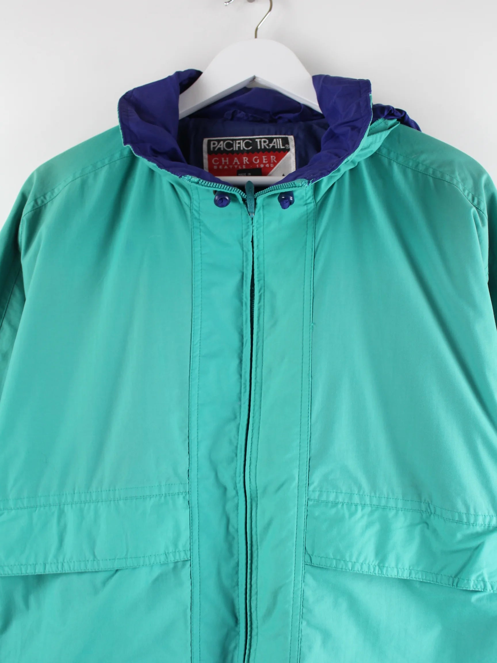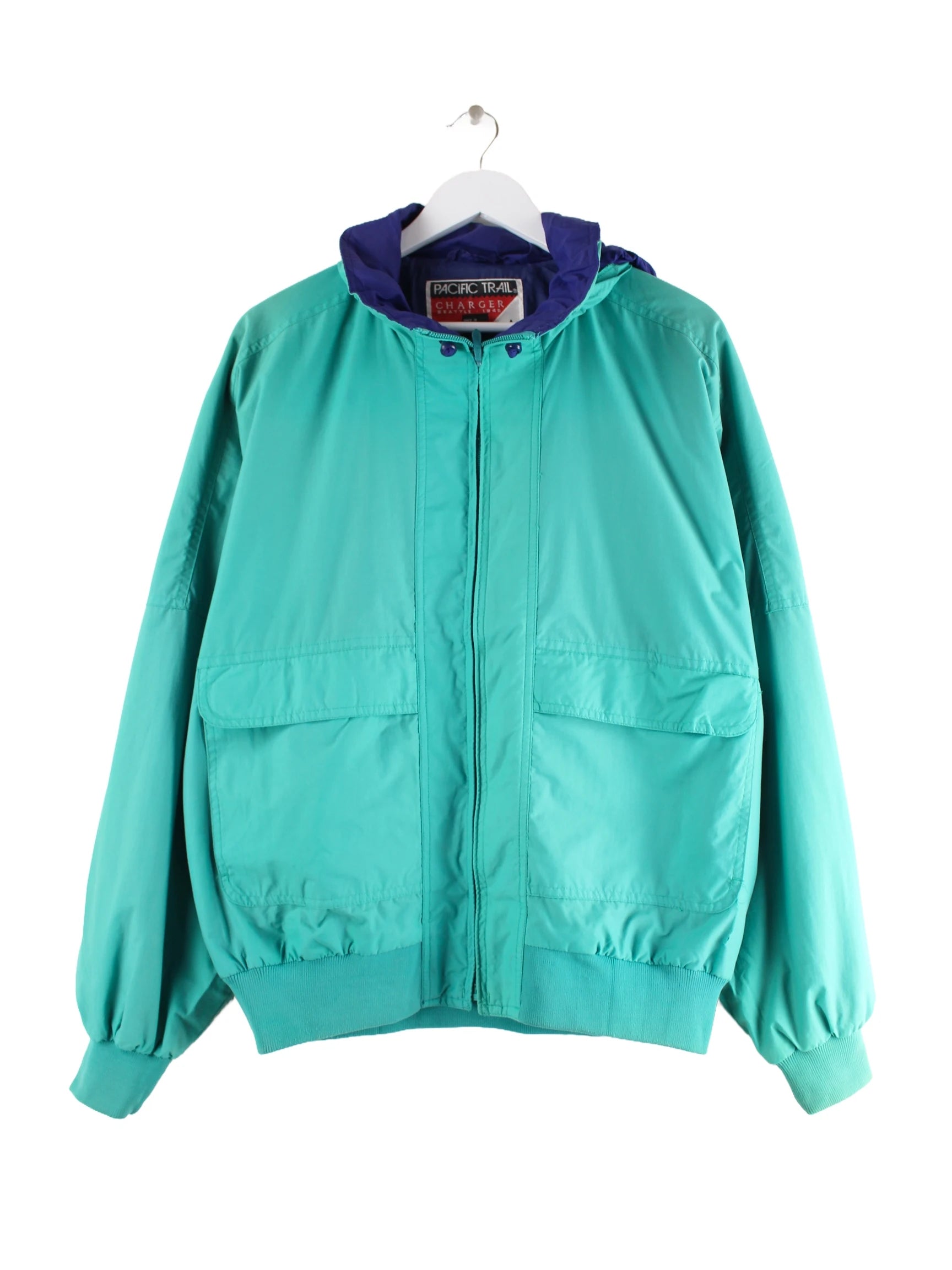 Vintage Leichte Jacke in Größe L aus den 90'ern. Sie ist aus Synthetik produziert und in Grün im Bestand.