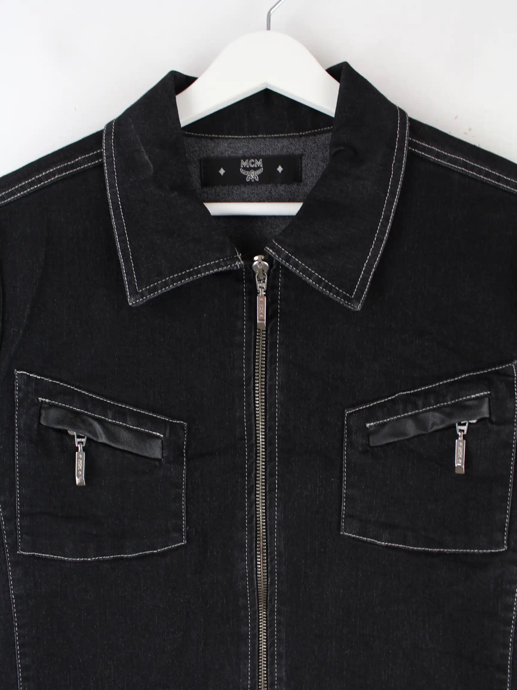Jeansanzug der Marke MCM in Größe L aus Anfang der 2000'er. Er ist aus einer Baumwollmischung und in Schwarz lieferbar.