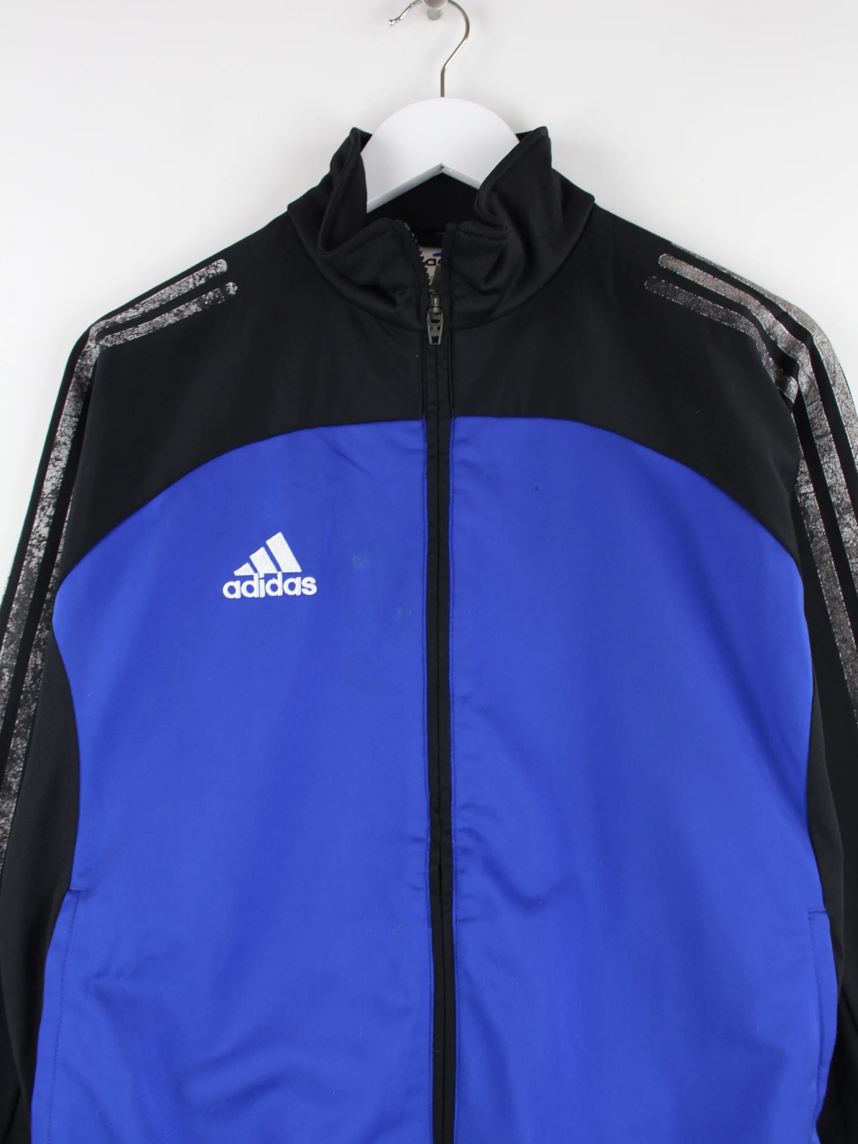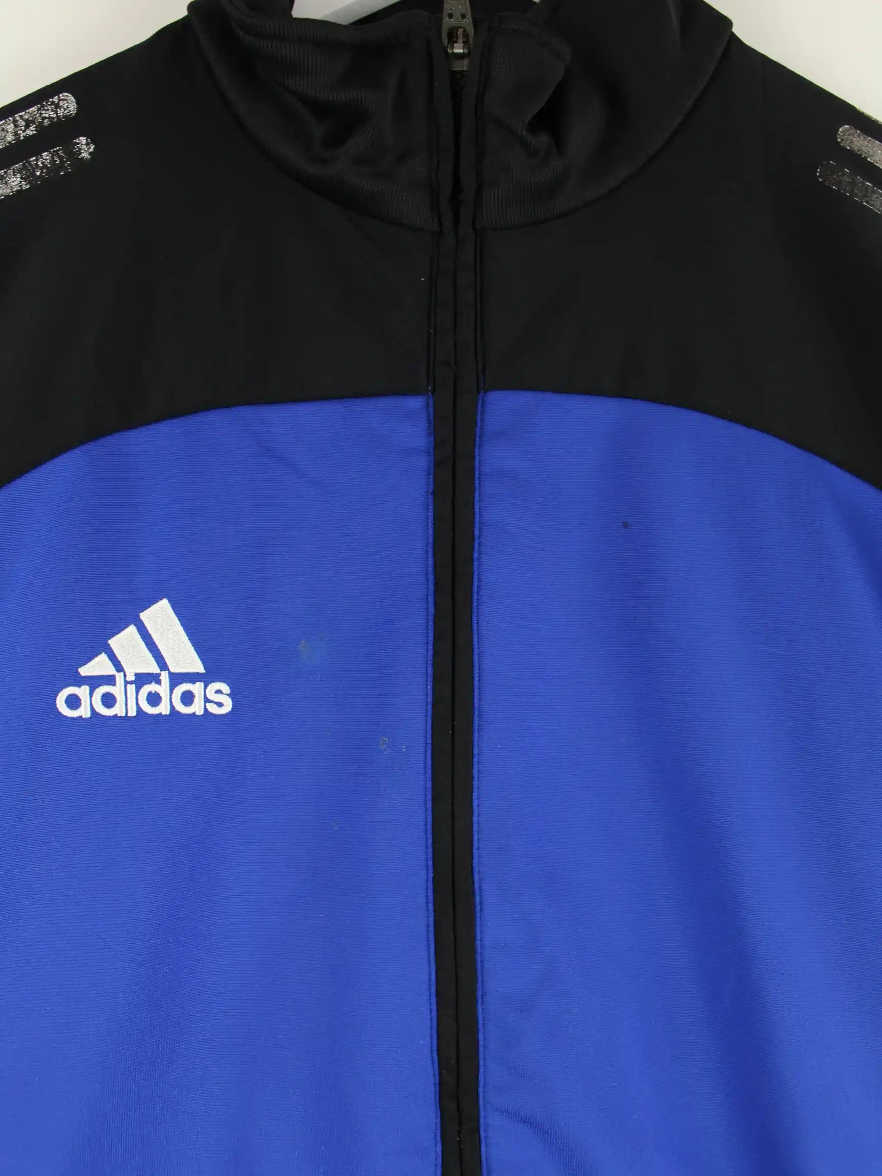 Trainingsjacke der Marke Adidas in Größe M aus den 90'ern. Sie ist aus Synthetik gemacht und in Blau in Stock.