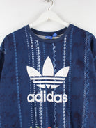 Blauer Sweater der Marke Adidas in Größe M. Er ist aus einer Baumwollmischung produziert und in gutem Zustand bei uns vorrätig. Mit seltenem Logo Print.