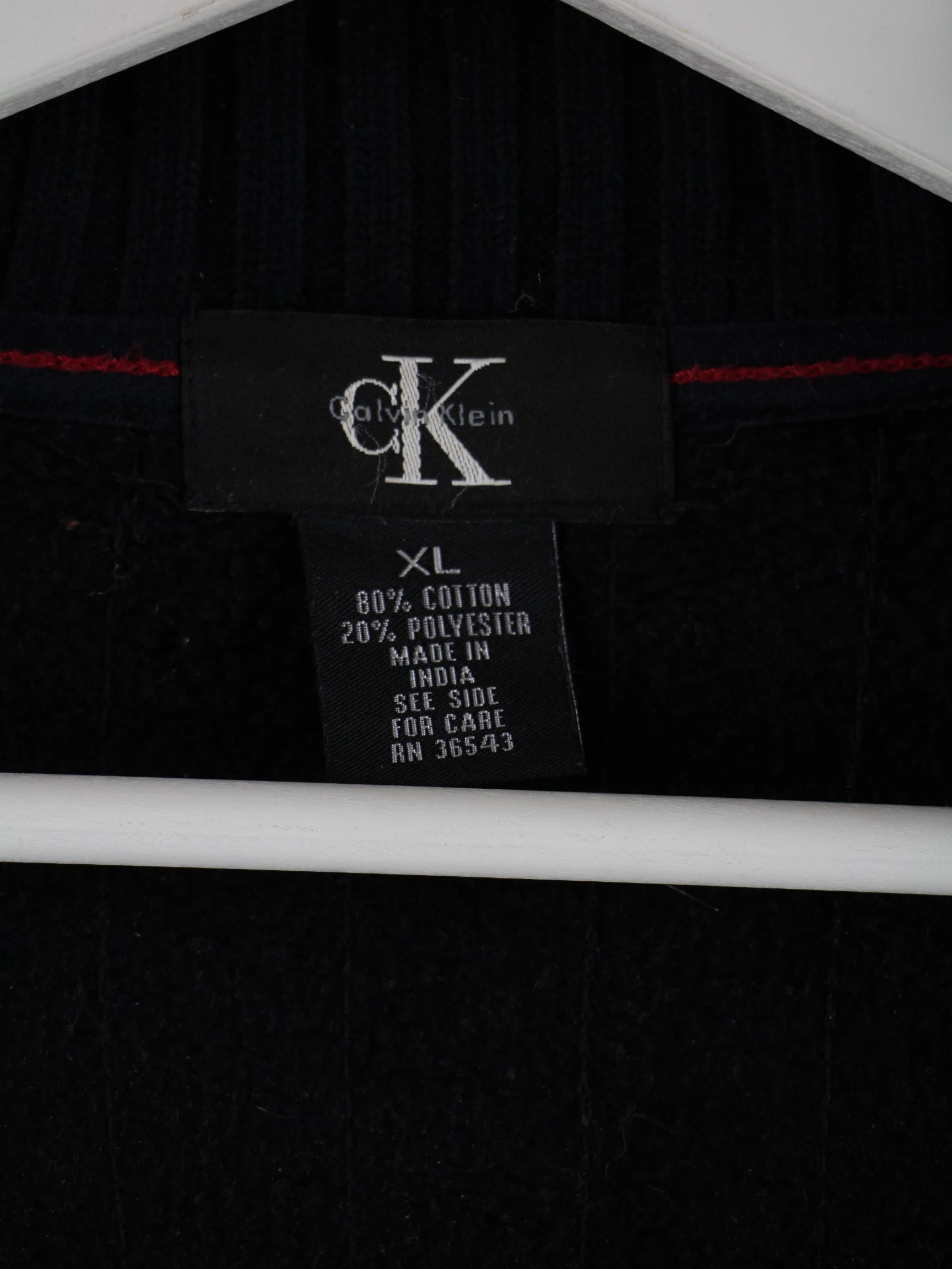 Schwarze Sweatjacke vom Label Calvin Klein in Größe XL. Sie ist aus einer Baumwollmischung gemacht und in sehr gutem Zustand bei uns vorrätig.