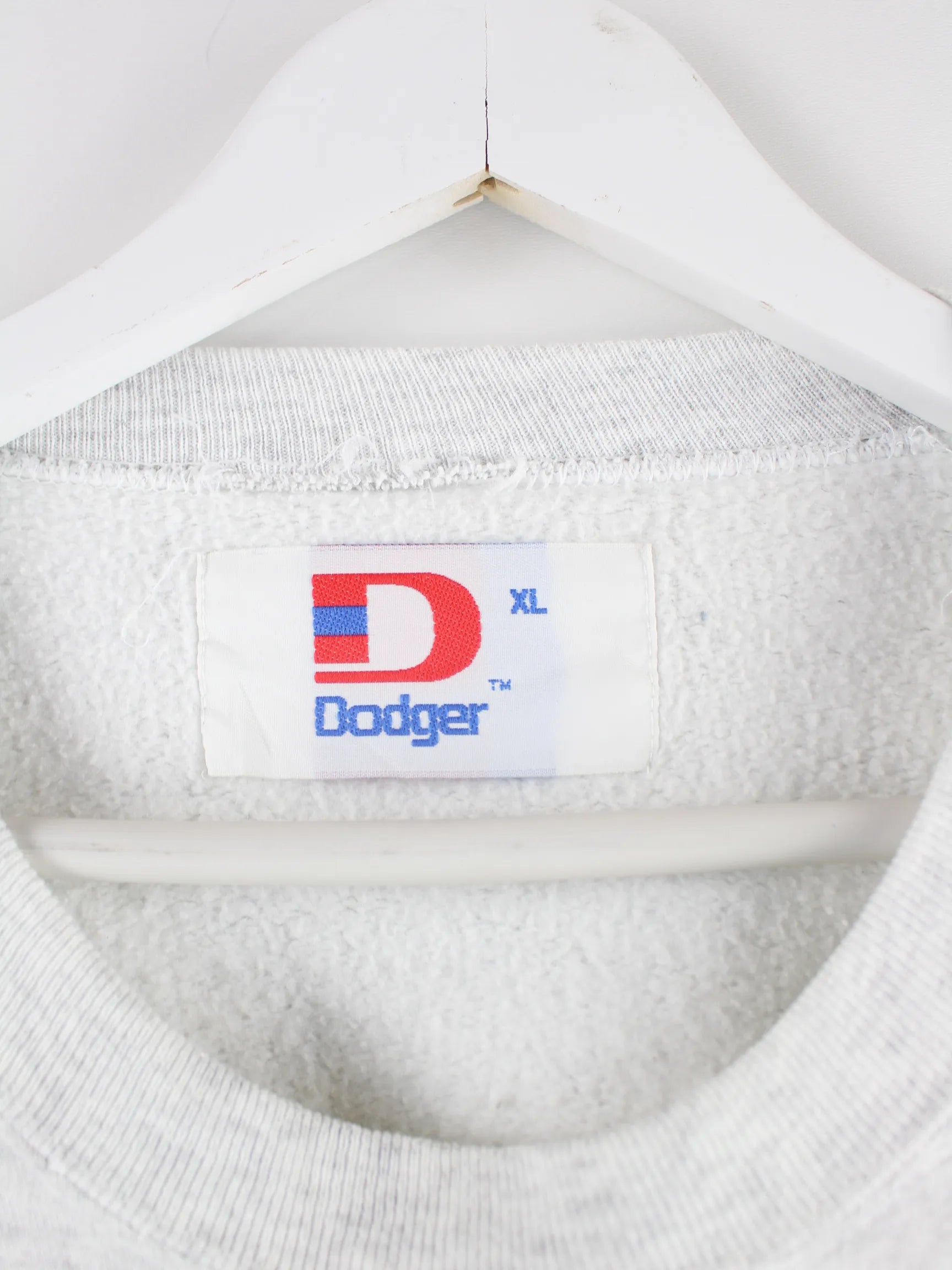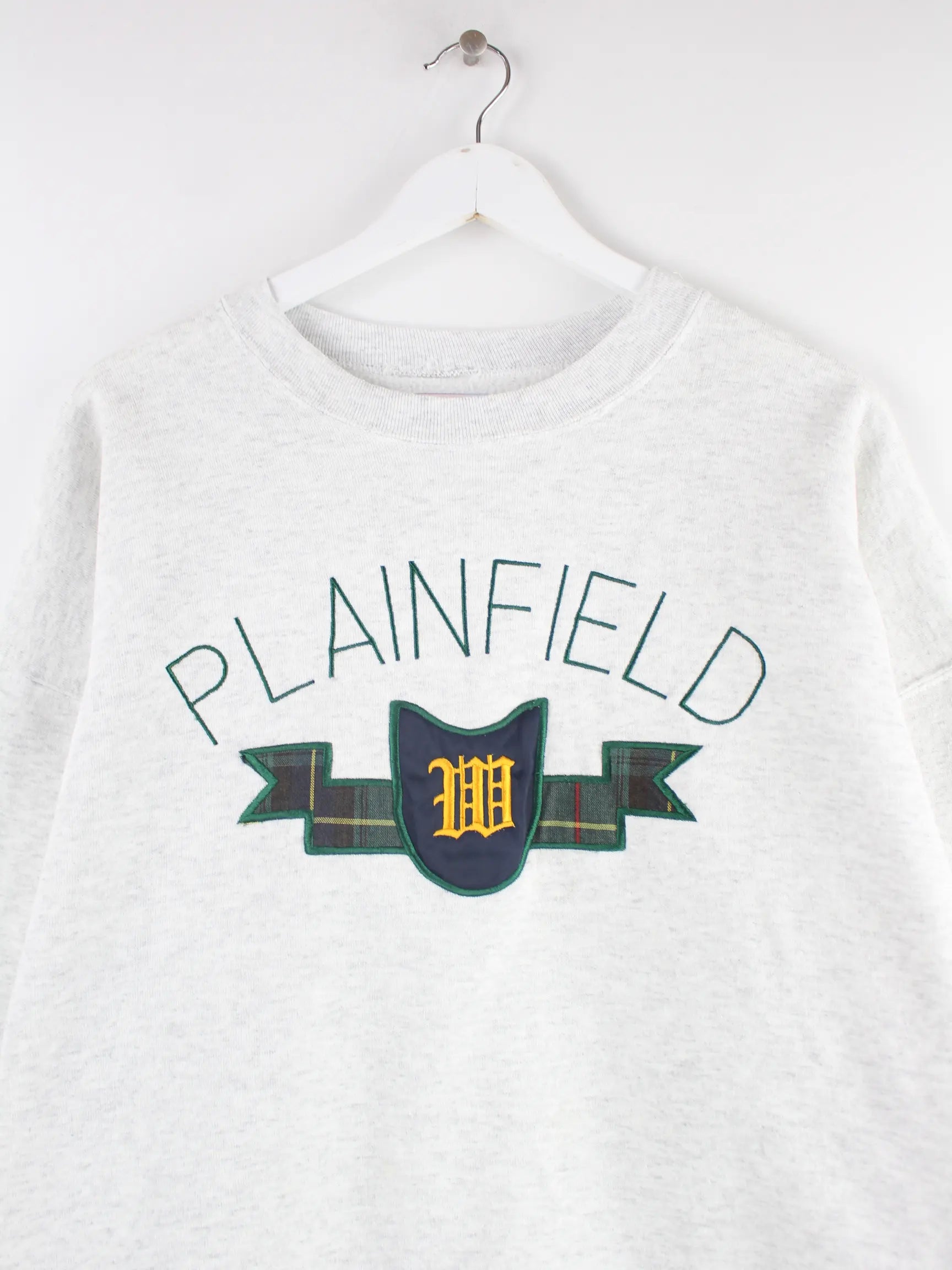 Sweater vom Brand Dodger in Größe XL aus den 90'ern. Er ist aus einer Baumwollmischung und in Grau auf Lager. Mit seltenem Plainfield Print.